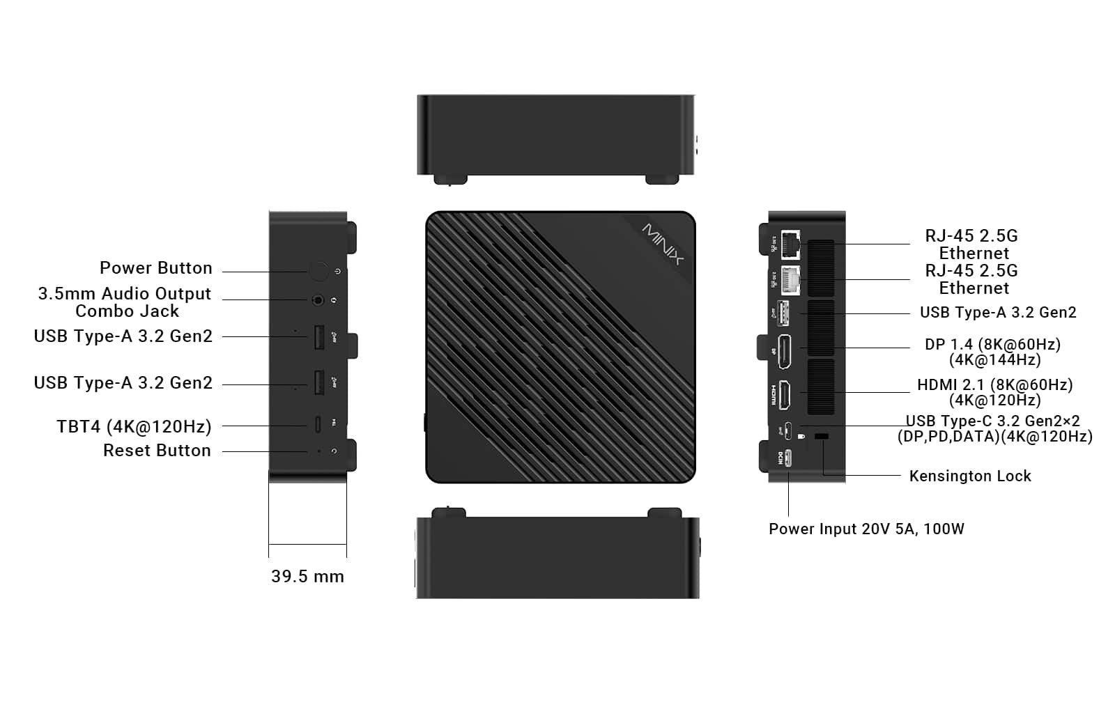 MINIX Elite EU512-AI Mini PC, Intel Ultra 5-125H, 16GB DDR5, 512GB M.2 PCIe SSD,
