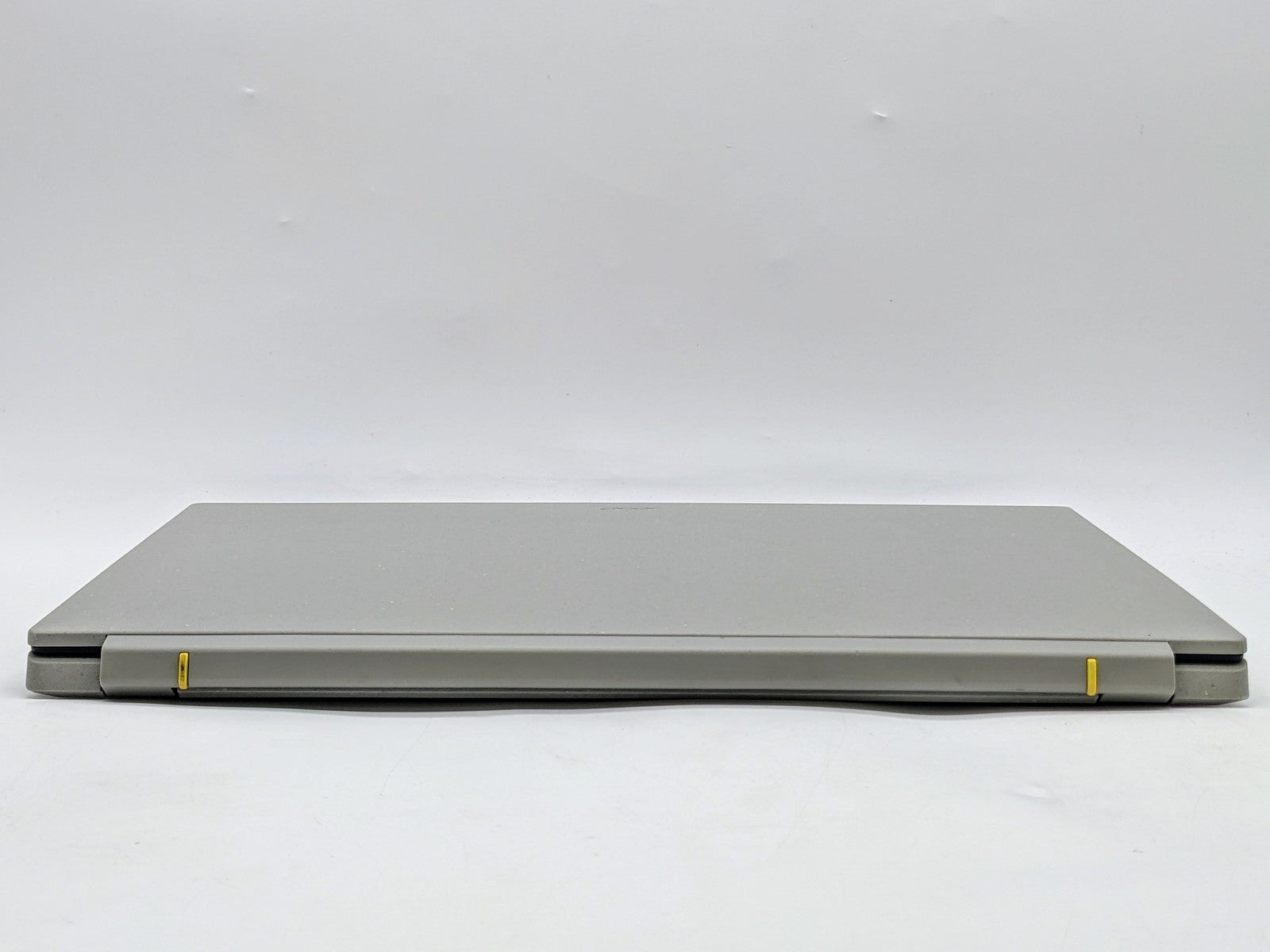Cosmetic Defects: Interior: Display has visible scratches and keyboard imprinting. Visible wear on keyboard, touchpad, and palm rest. Cracked on bezel and top-left of base (near "Esc" key). Exterior: Light wear and scratches on lid and bottom cover, wear along edges of device.