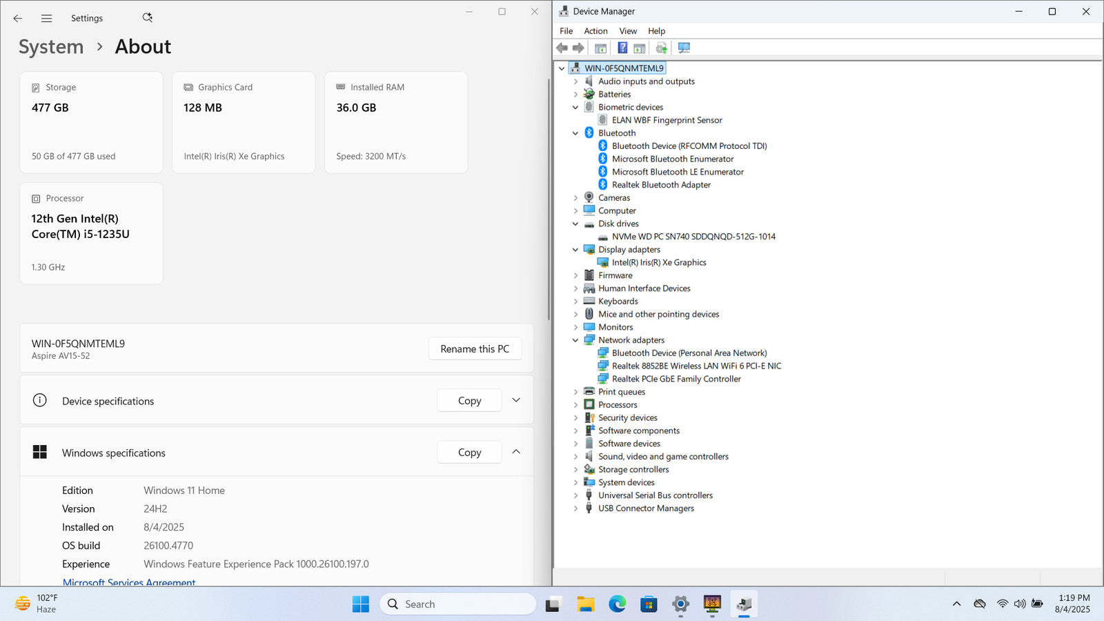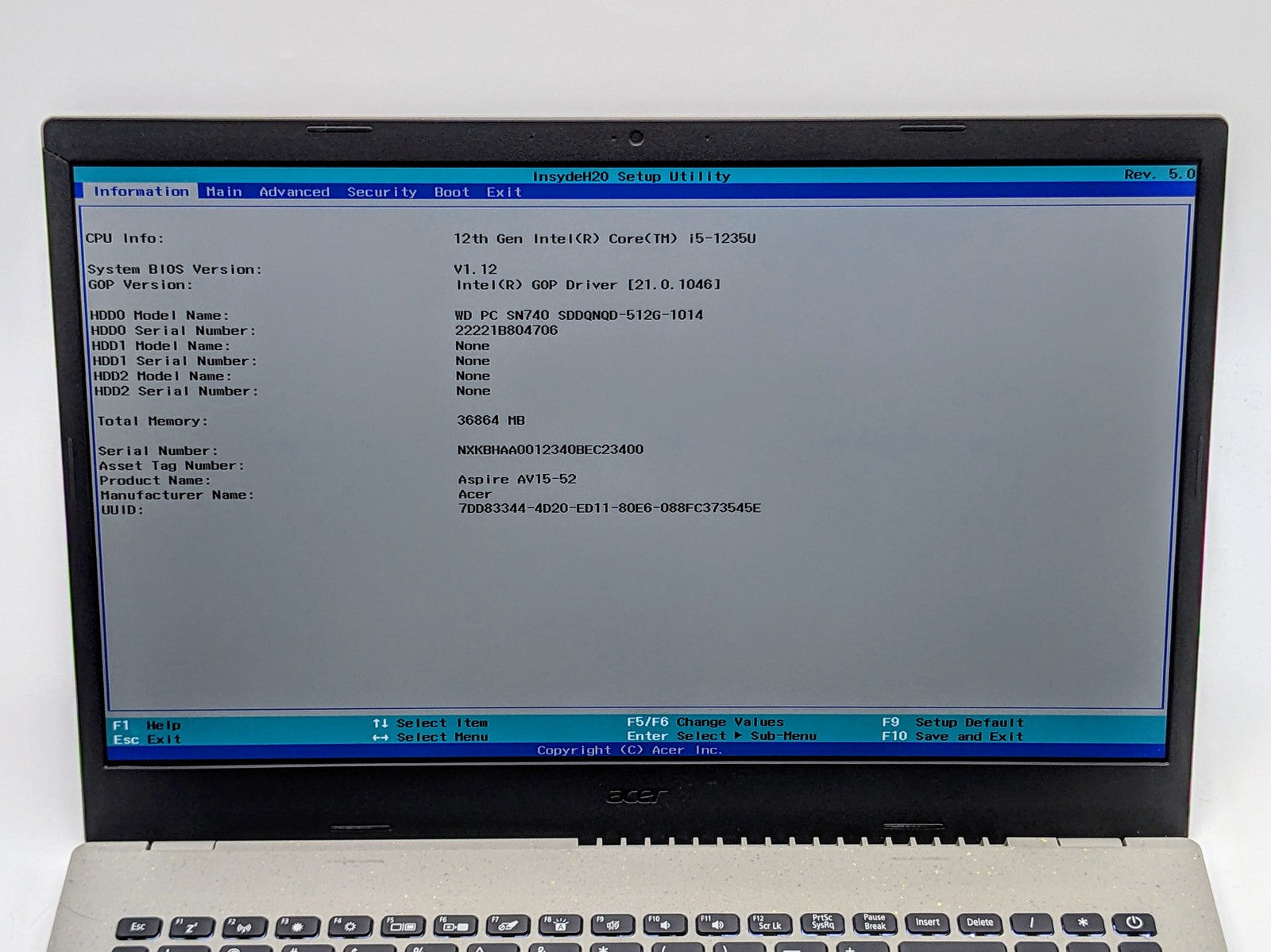 Acer Aspire Vero AV15-52 15" FHD I5-1235U 512GB SSD 36GB W11 Webcam Backlit