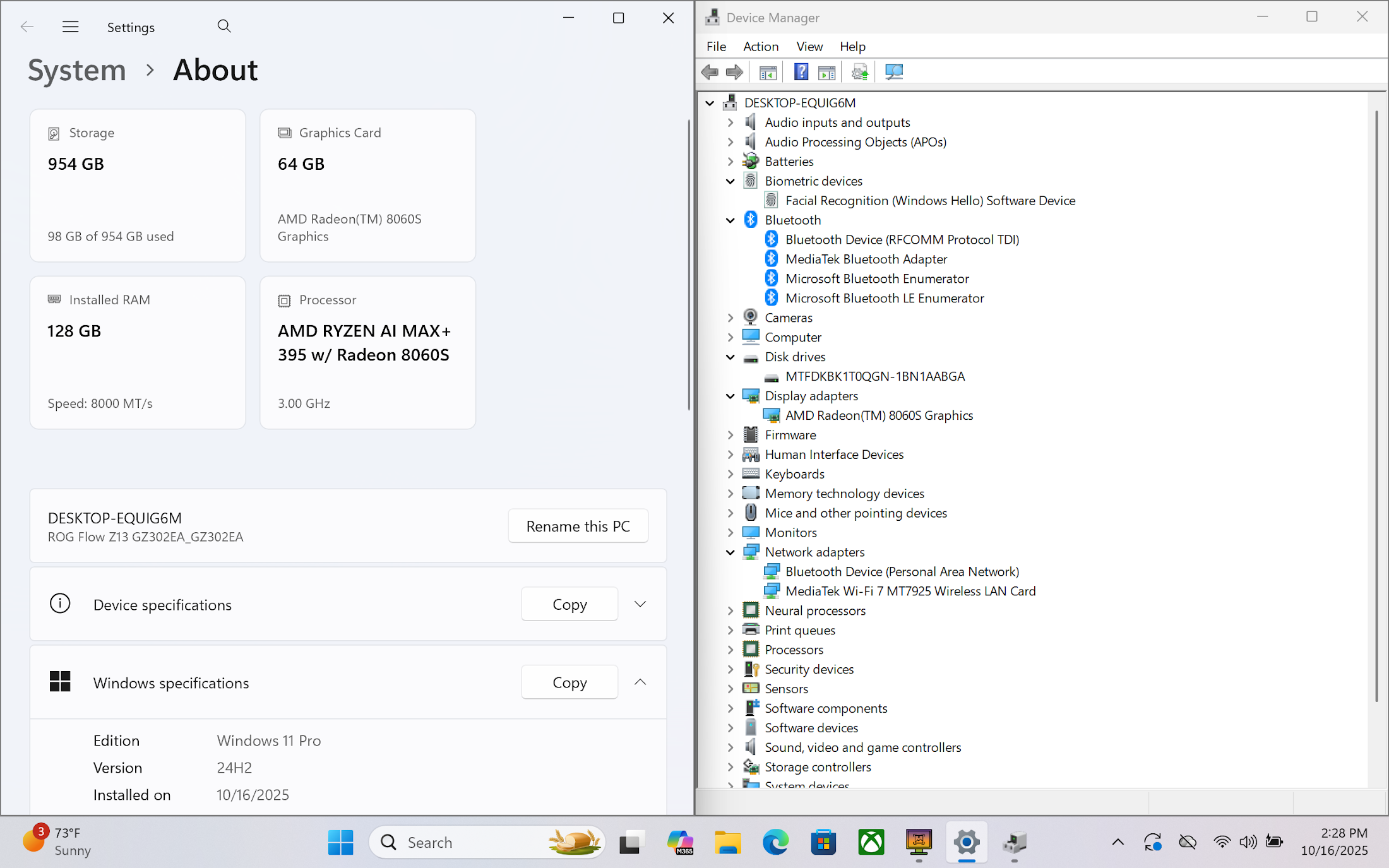 ASUS ROG Flow Z13 GZ302 2-in-1 13" WQXGA Touch AI MAX+ 395 1TB 128GB W11P 180Hz