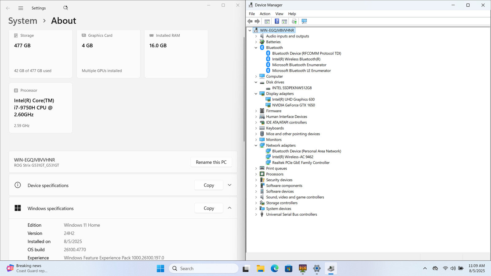 ASUS ROG G531GT 15" FHD I7-9750H 512GB SSD 16GB W11 GeForce GTX 1650 RGB *READ*