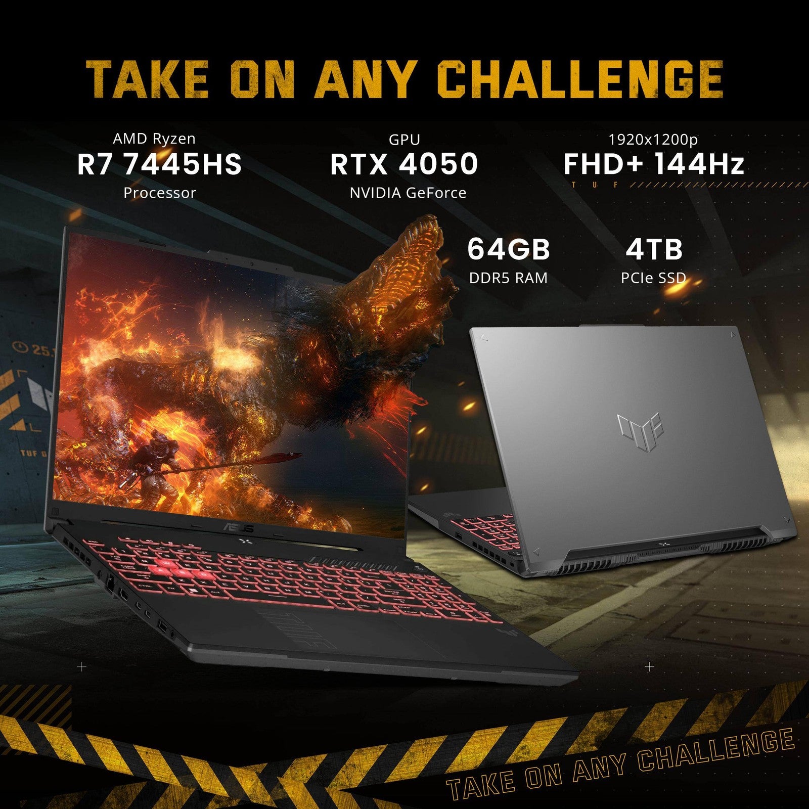 •title: ASUS - TUF Gaming A16 16" Laptop,AMD Ryzen 7 7445HS,GeForce RTX 4050,64GB DDR5,4TB SSD+288GB Dock Station,Win 11 Pro - Gray