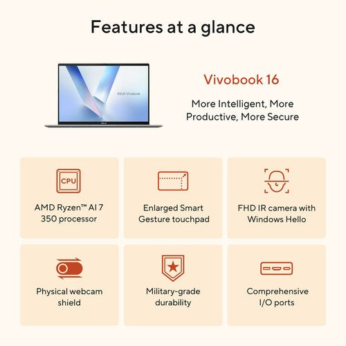 •Model: Vivobook 16 Laptop Copilot+ PC