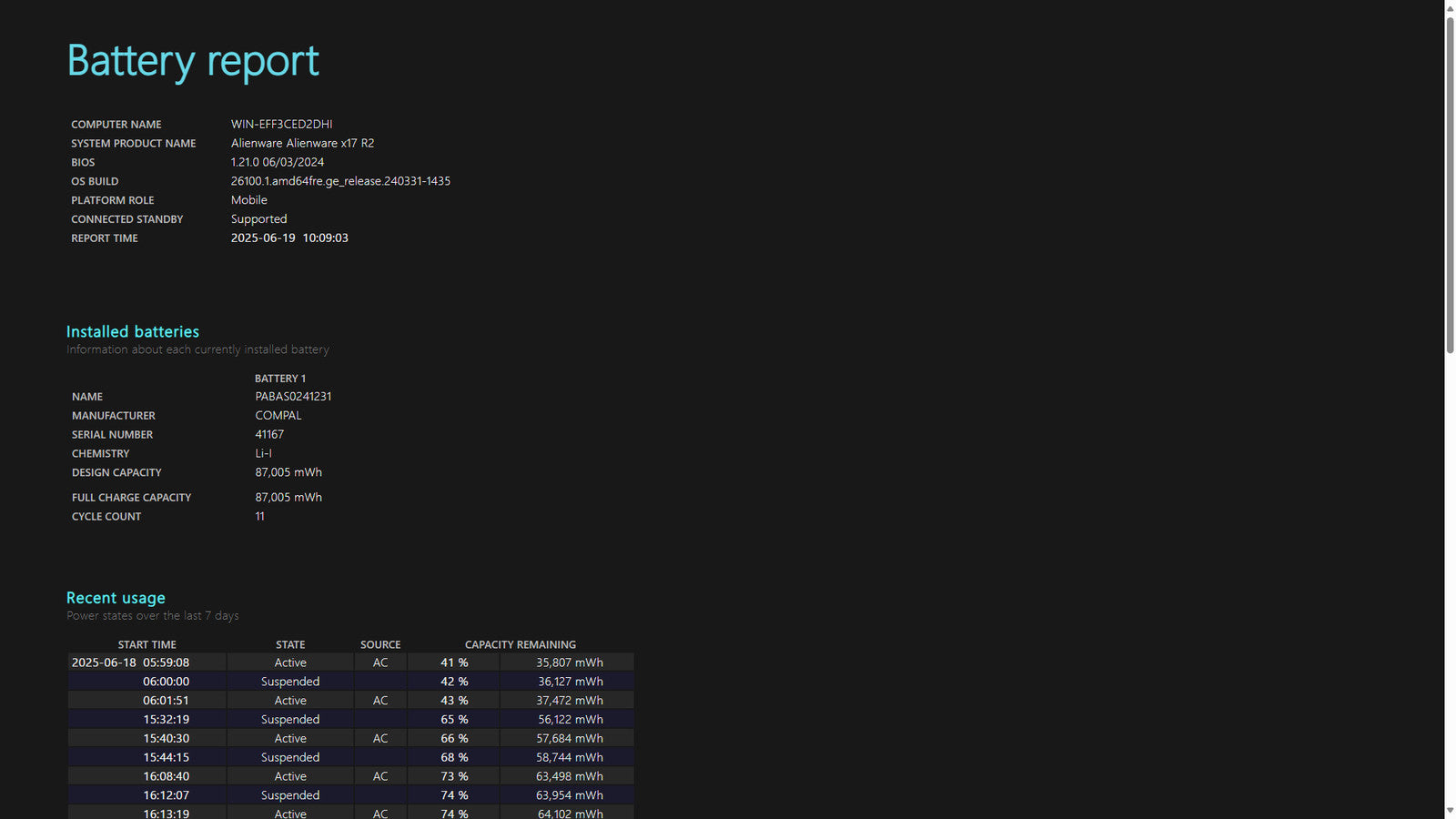 Battery Condition: 87,005/87,005 mWh 100.00%