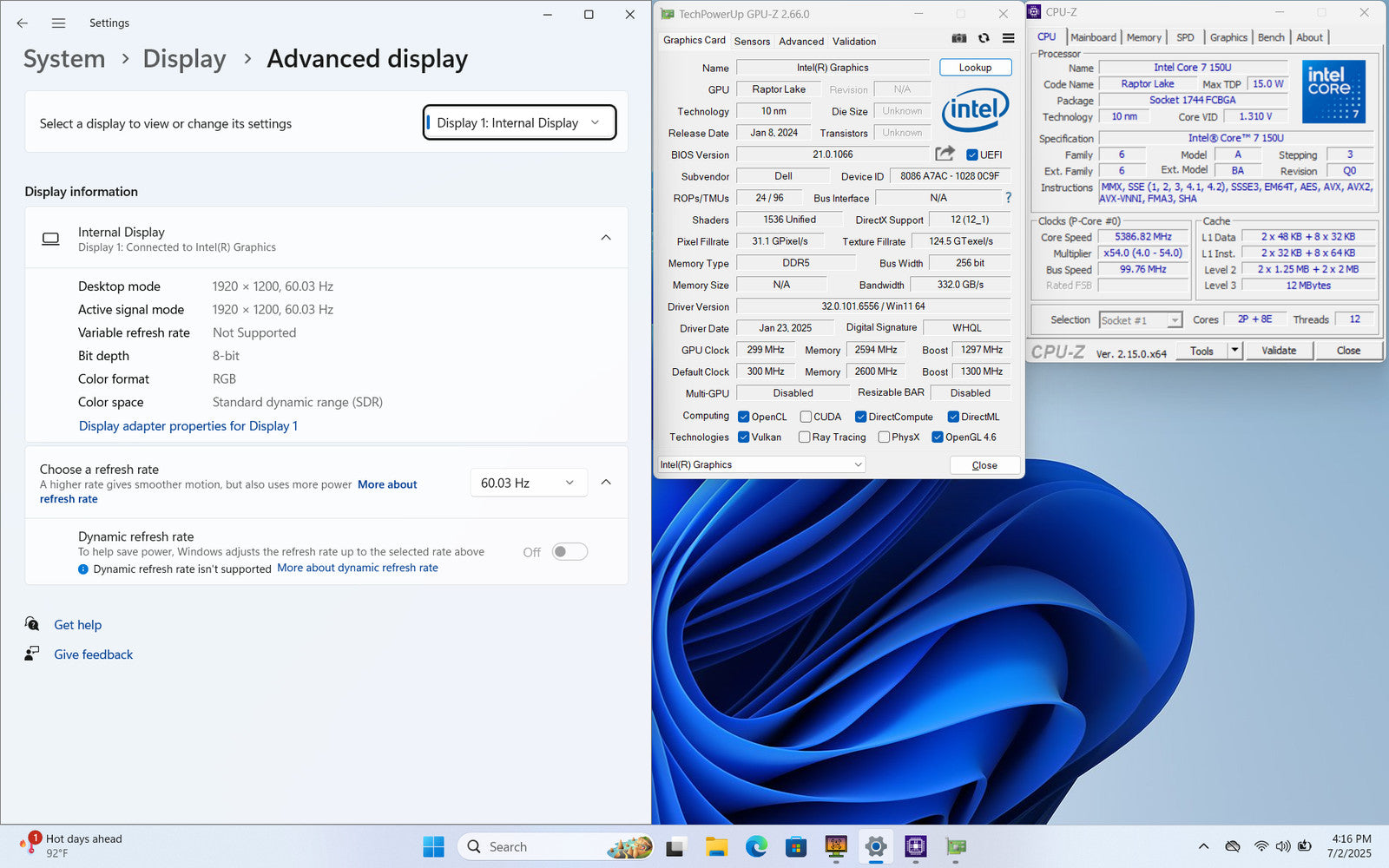 Dell Inspiron 16 5640 16" FHD+ Touch 7 150U 1TB SSD 16GB W11 Webcam Warranty