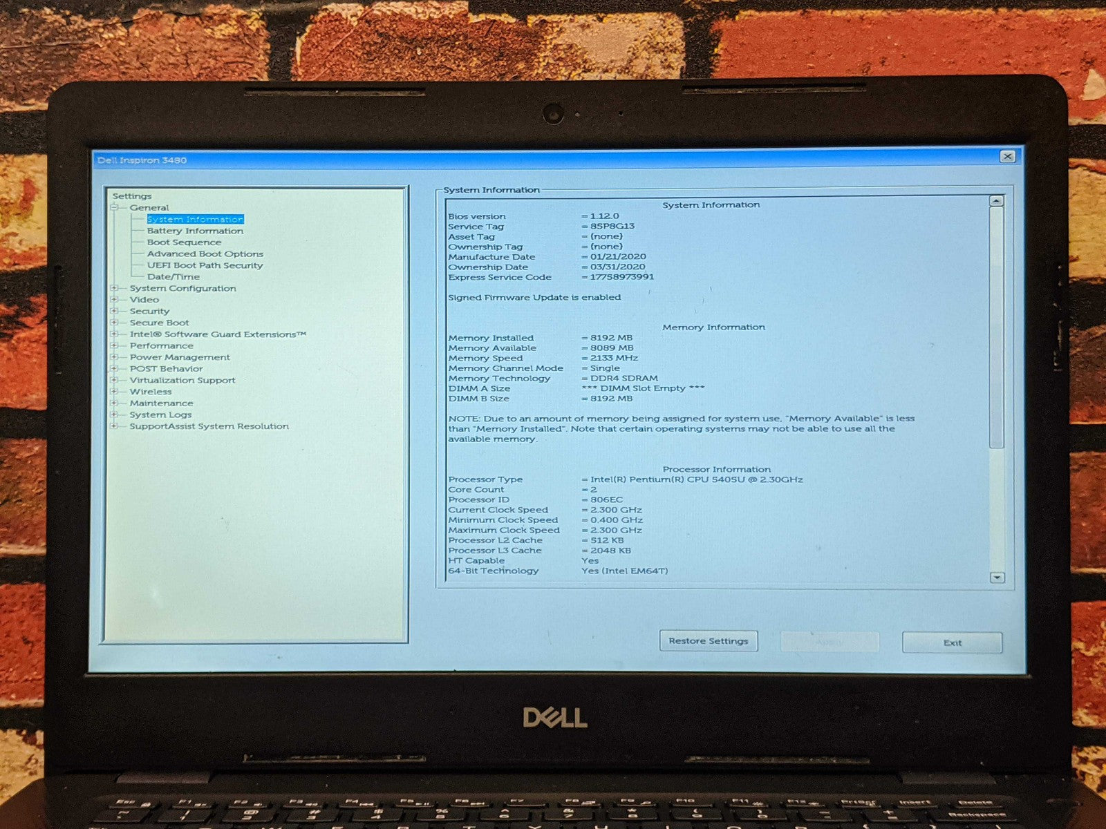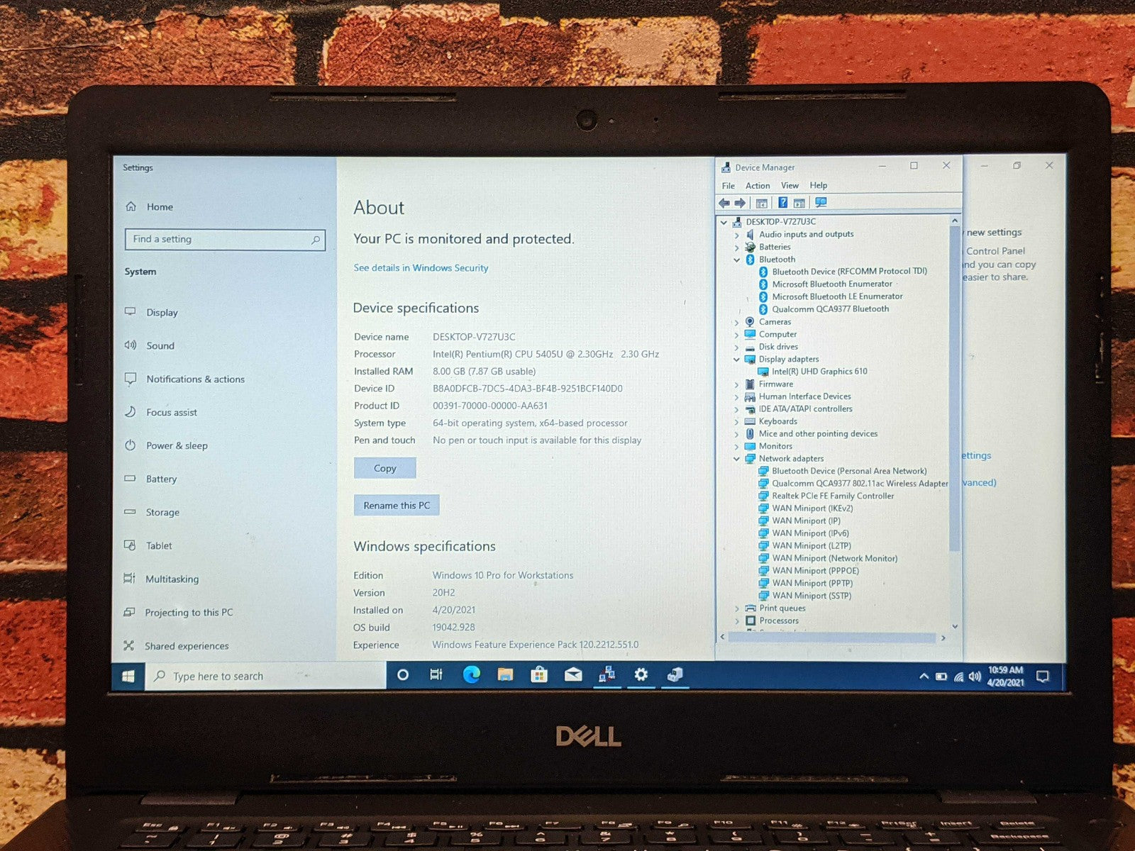 Dell INSPIRON 3480 15.6" HD PENTIUM 5405U 2.30GHz 512GB SSD 8GB W10P