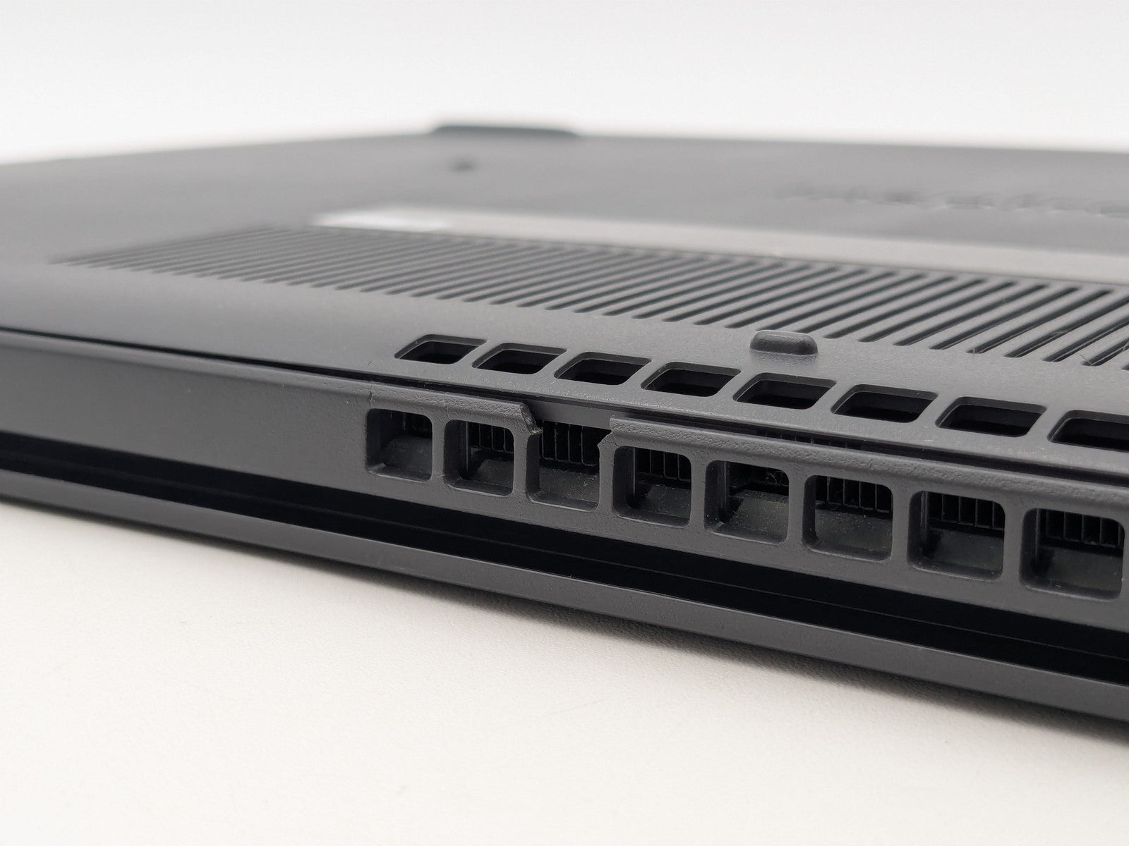 Cosmetic Defects: Interior: Display has visible scratches and/or keyboard imprinting. Display bezel cracked, left side. Palm rest cracked on both sides. Exterior: Top and bottom covers have moderate wear/visible scratches.