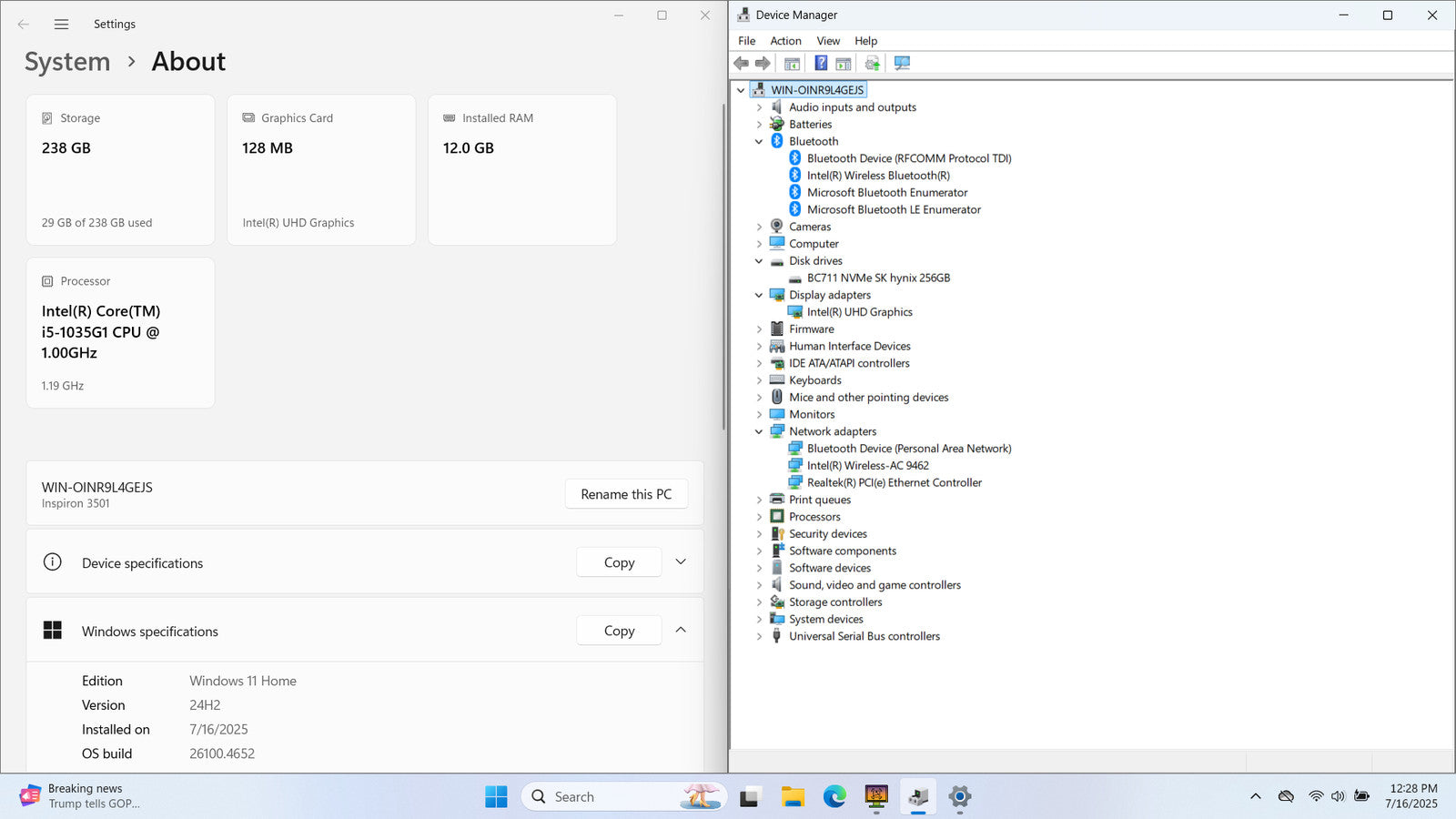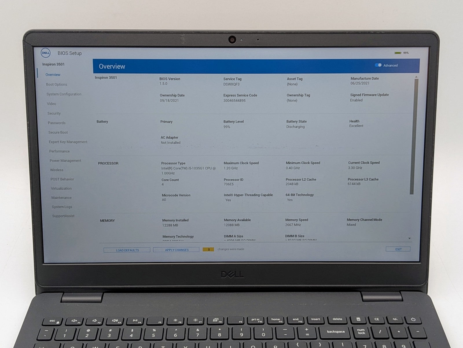DELL INSPIRON 3501 15" FHD Touch I5-1035G1 256GB SSD 12GB W11 Webcam