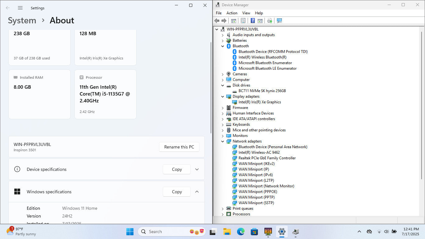 DELL Inspiron 3501 15" HD I5-1135G7 256GB SSD 8GB W11 Webcam *READ*