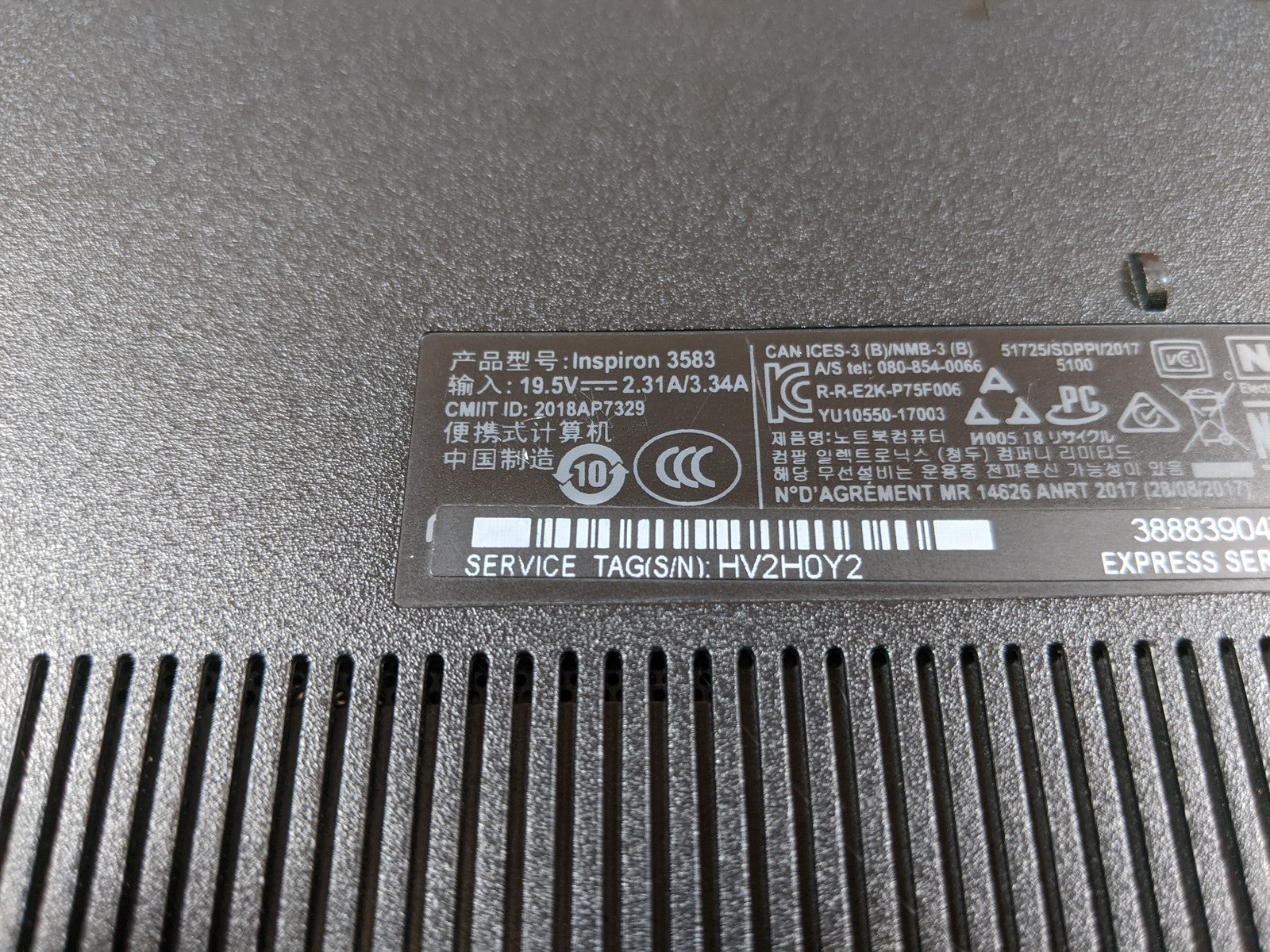 Dell INSPIRON 3583 I5-8265U 1.60GHz Motherboard Battery LA-G721P VFMW4 0VFMW4