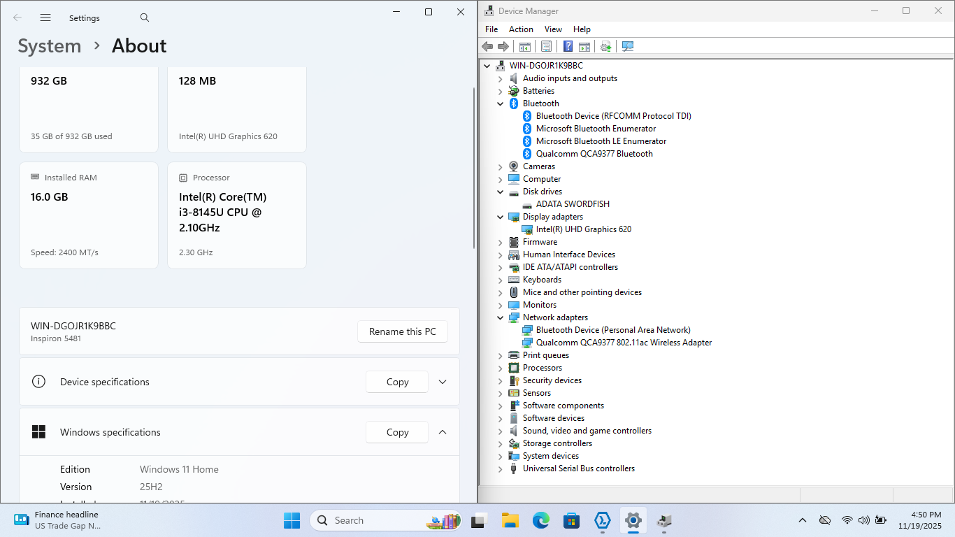 Dell Inspiron 5482 2-in-1 14" HD Touch I3-8145U 1TB SSD 16GB W11 Webcam *READ*