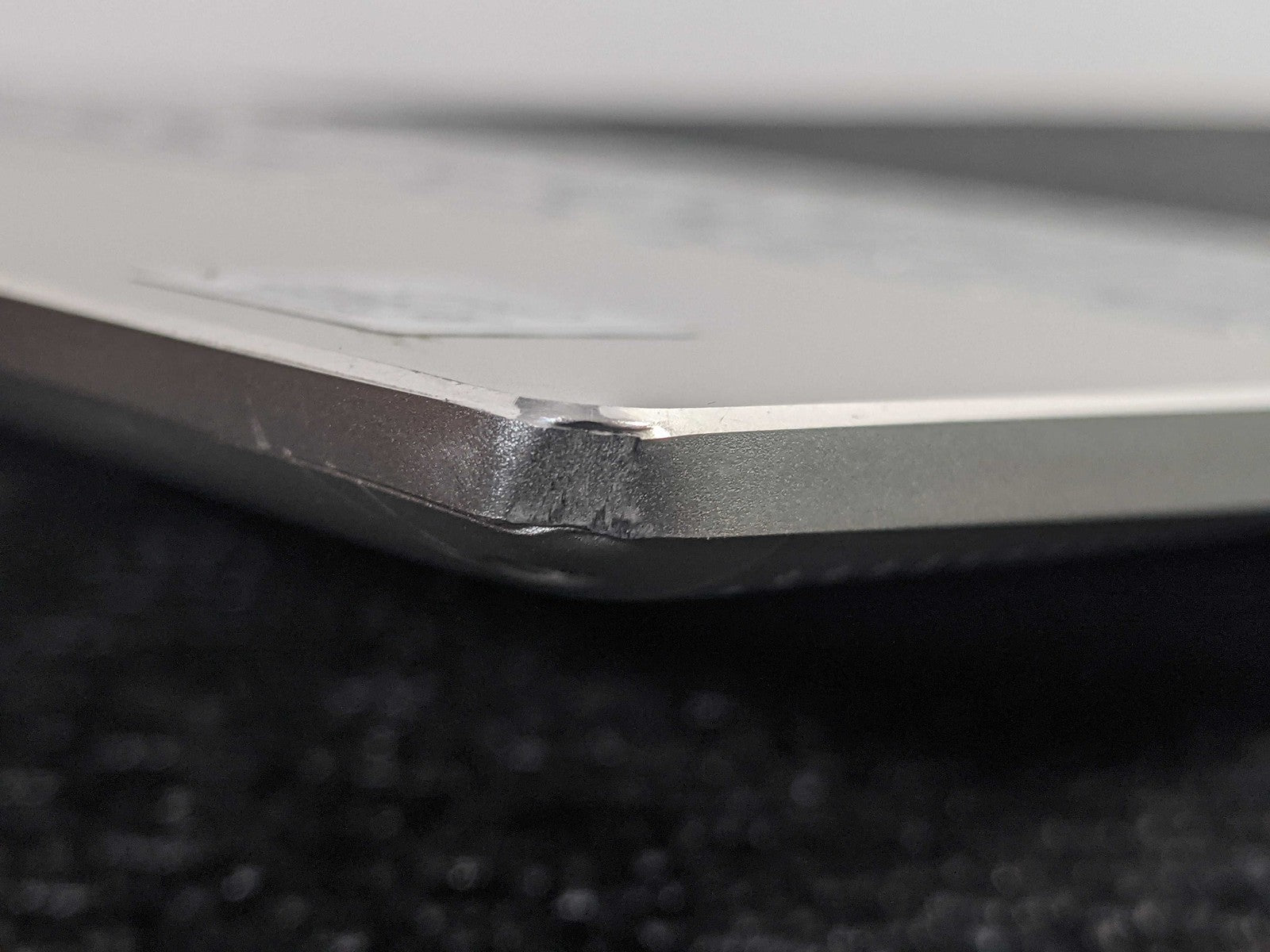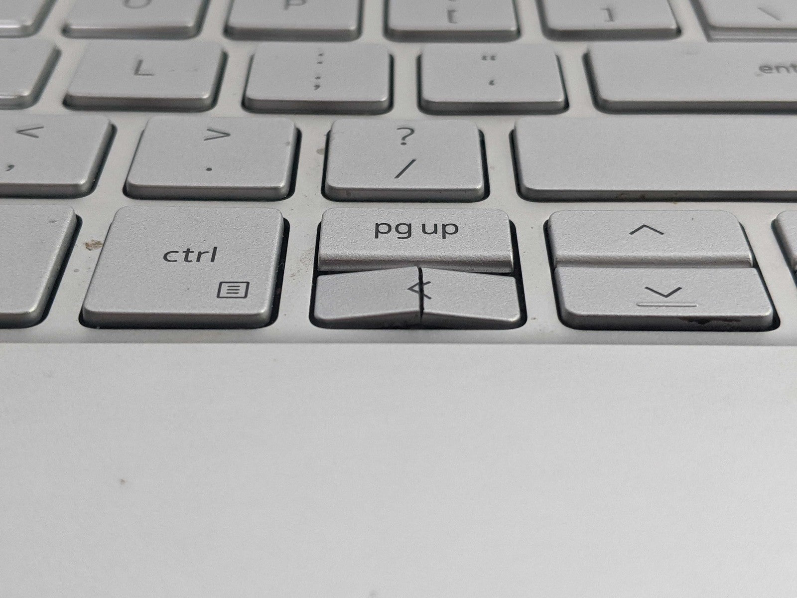 Cosmetic Defects: Left arrow key is cracked in half. Bottom right corner is dented and scratched.