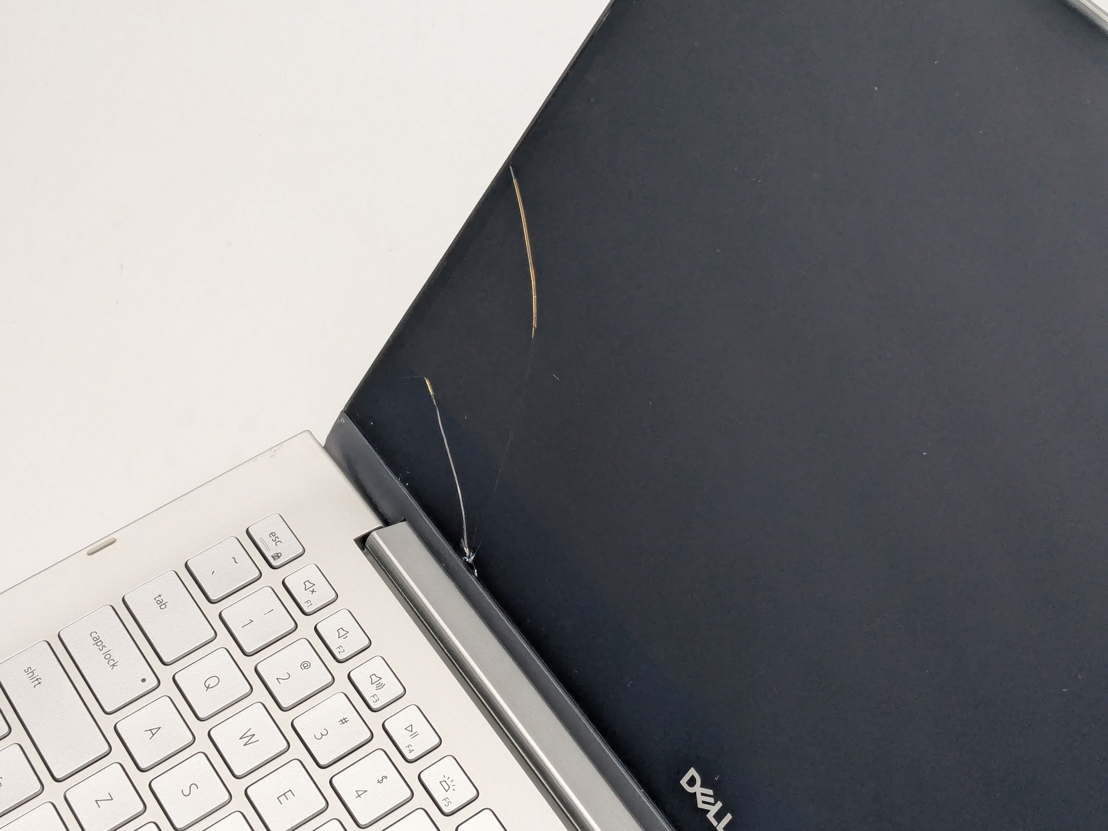 Cosmetic Defects: Interior: Display has visible scratches and large cracks. Visible wear on palm rest, light wear on touchpad and keyboard. Exterior: Visible wear and scratches on lid and bottom cover. Scuffed along edges. Small dents on lid and corners.