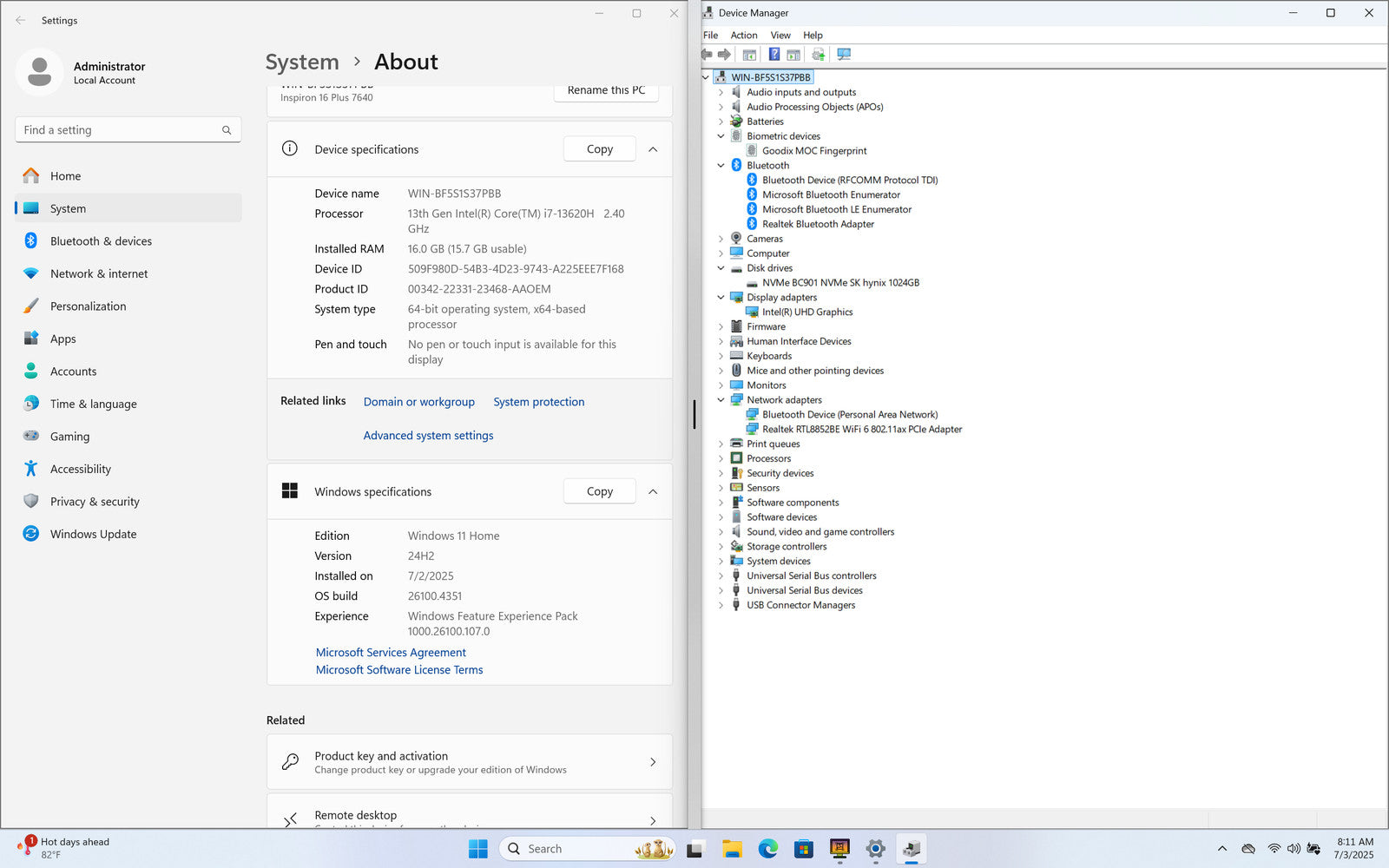 Dell Inspiron Plus 7640 16" 2560 x 1600 13TH I7-13620H 1TB SSD 16GB W11 120Hz