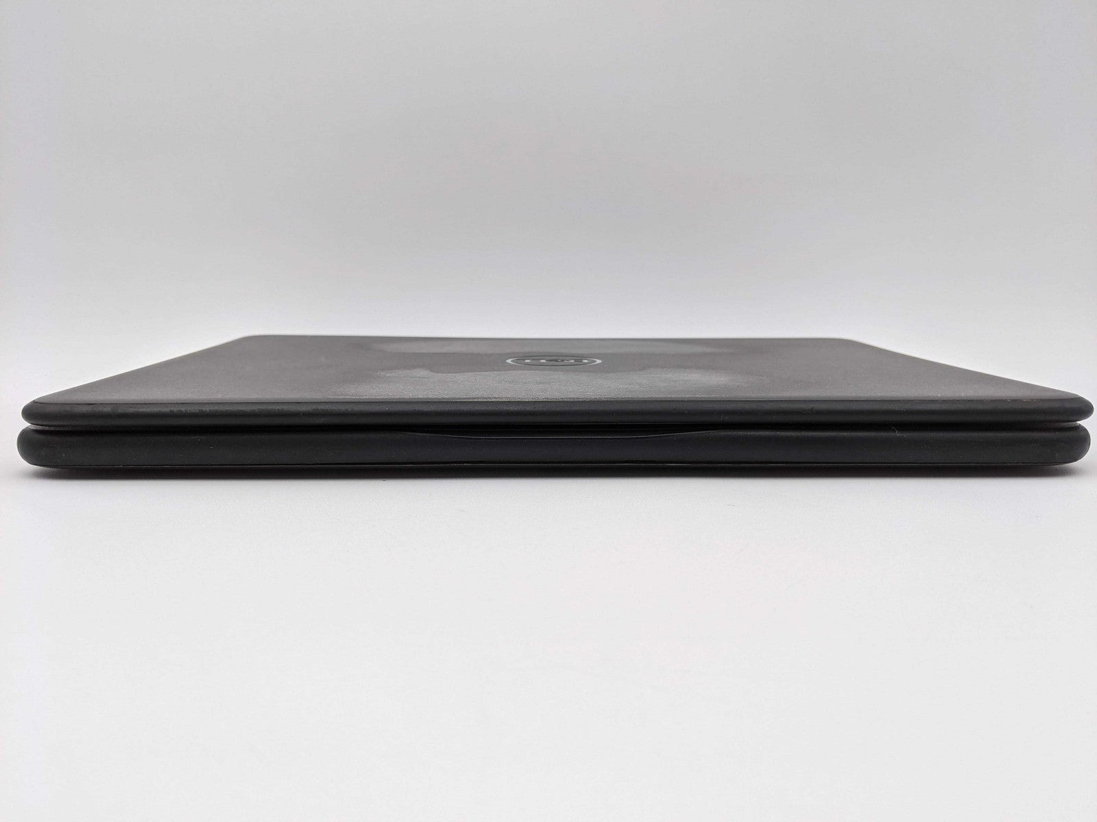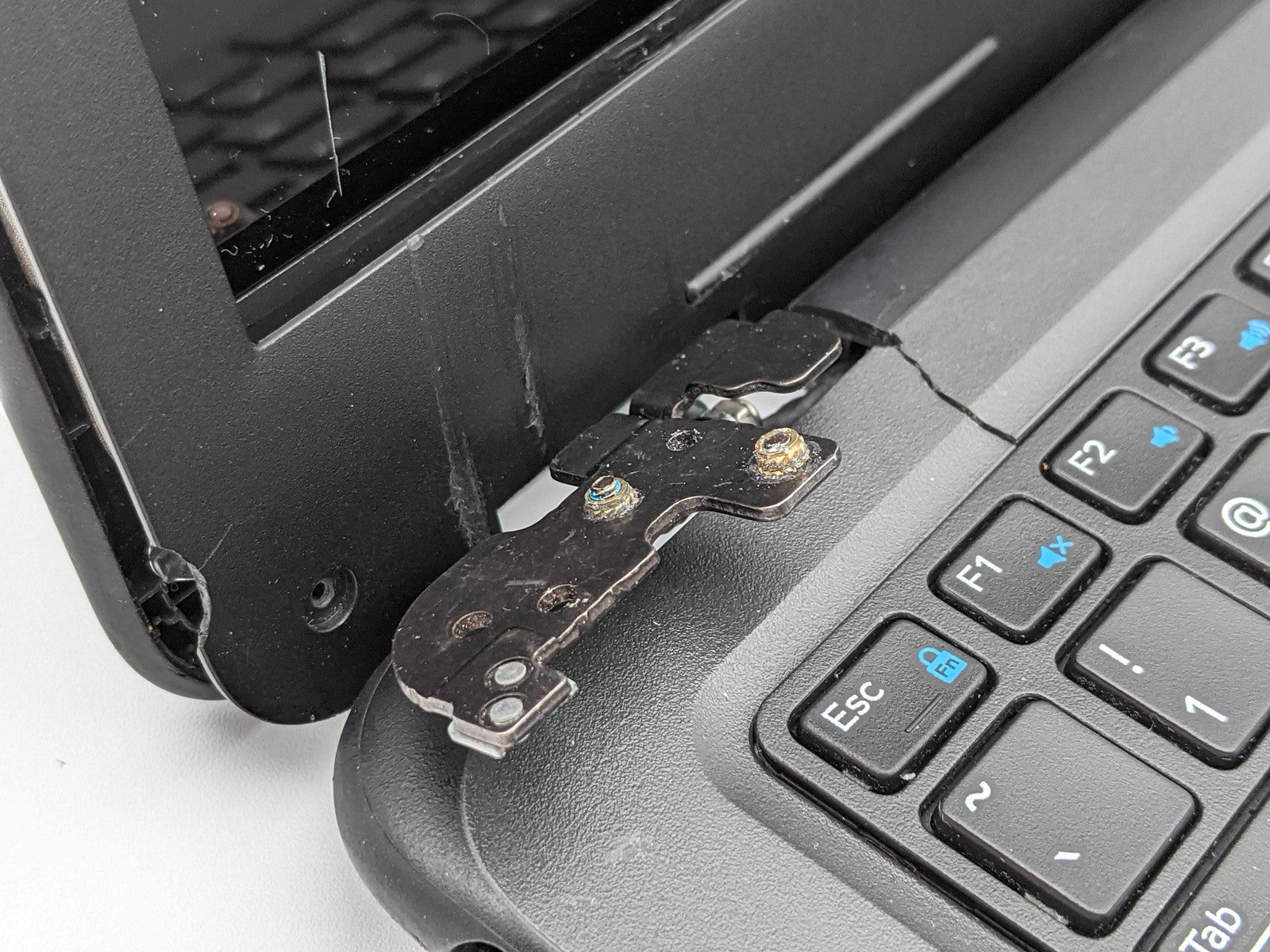 Cosmetic Defects: Interior: Scratches on display. Display bezel and left hinge damaged. Cracked palm rest. Exterior: Heavy wear and scratches top cover. Scratches bottom cover. Wear on sides.