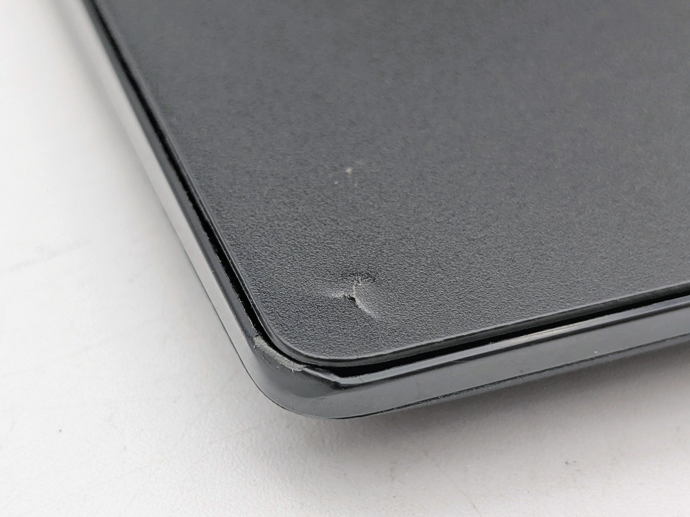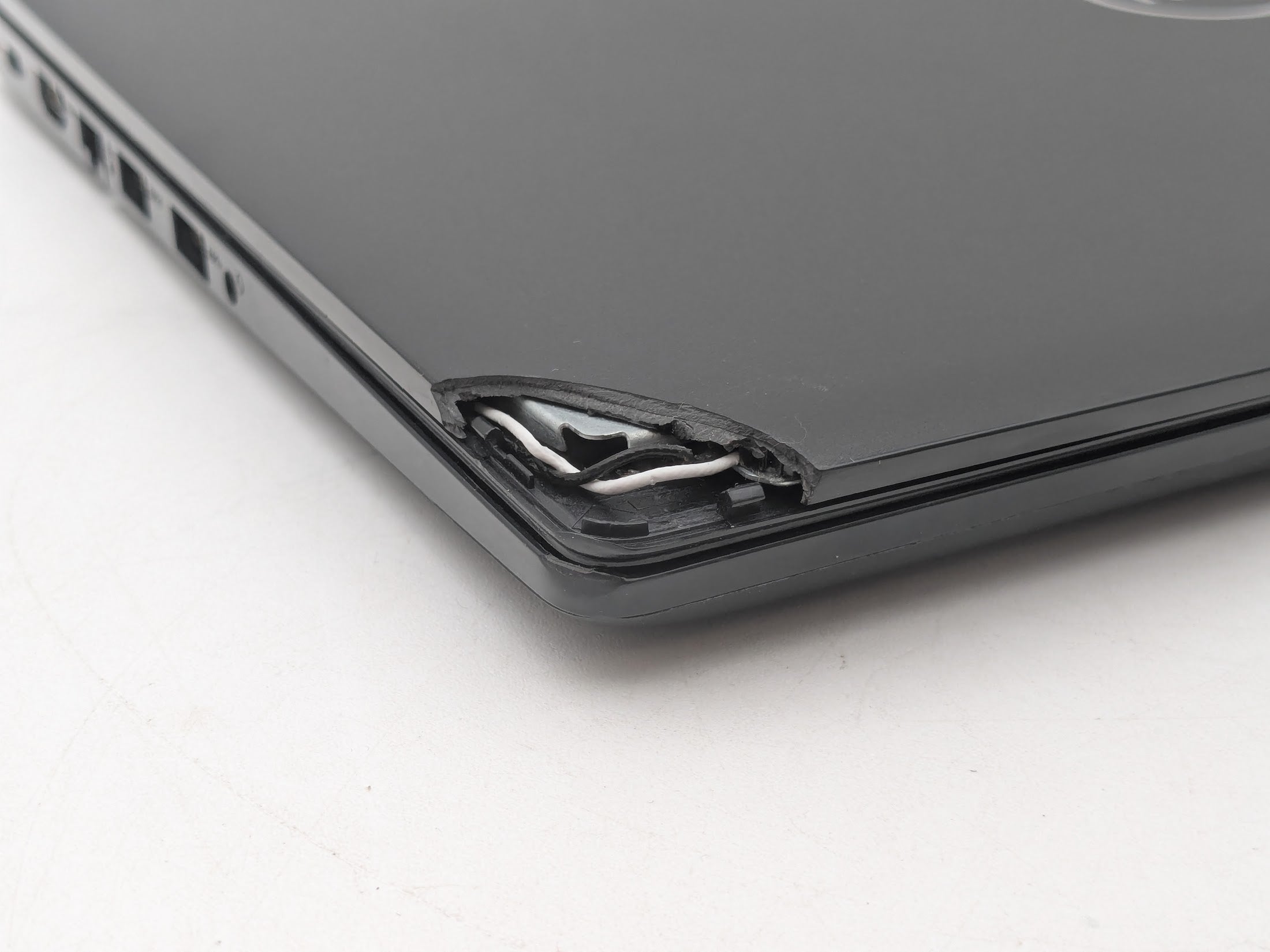 Cosmetic Defects: Interior: Light wear on bezel, visible wear on keyboard, moderate wear, scratches, and small crack on palm rest, light wear on touchpad. Moderate wear on power button. Exterior: Visible wear and scratches on lid and bottom cover, cracked on corner of lid. Wear and scratches along edges of device.