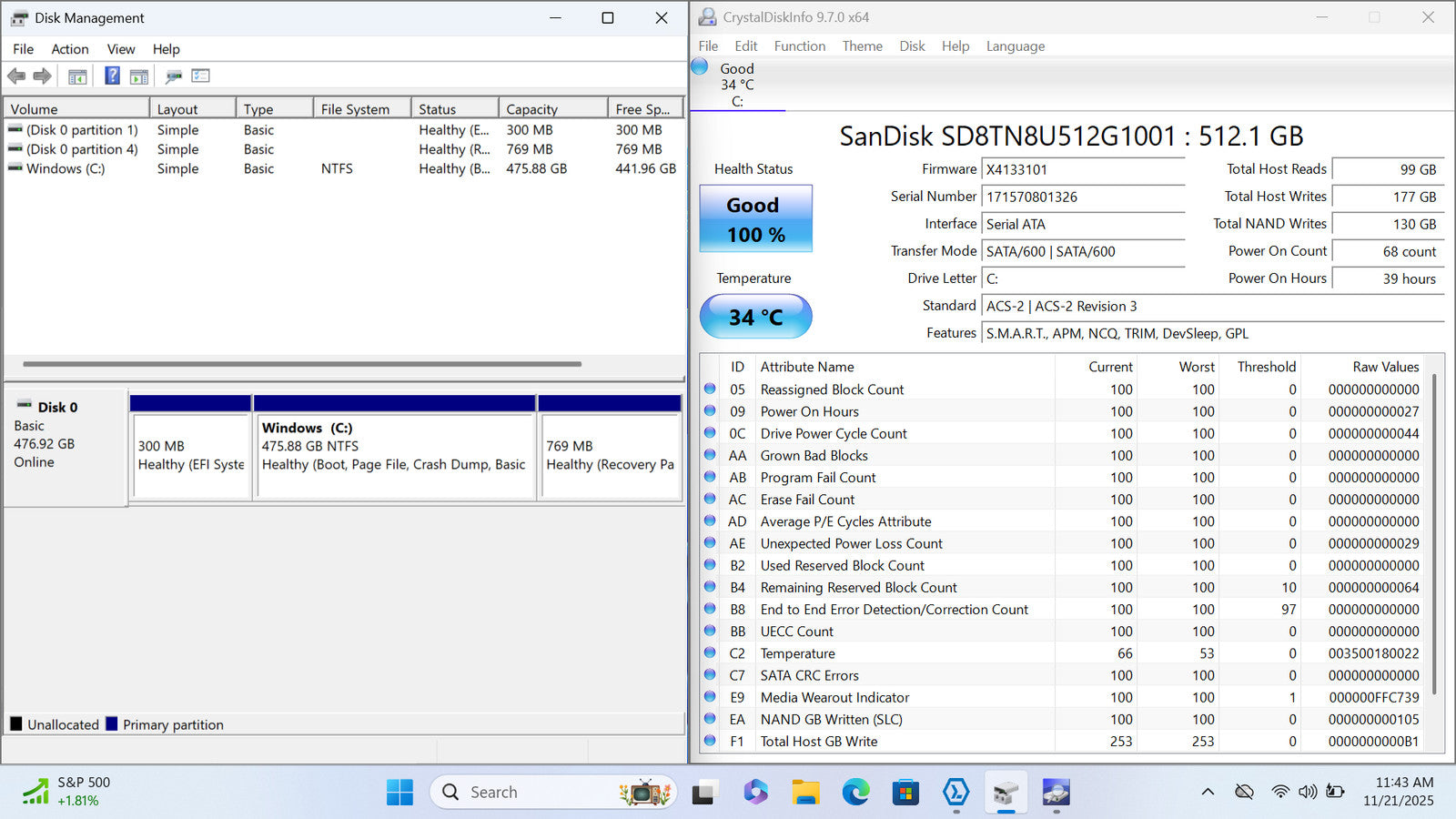 Battery Condition: 39,165/53,010 mWh 73.88%