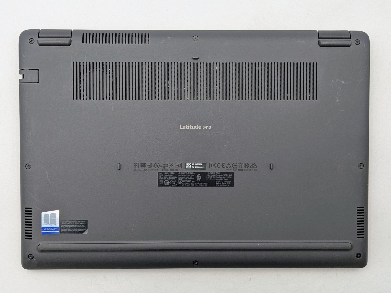 Cosmetic Defects: Interior: Display has visible scratches and keyboard imprinting. Moderate wear on keyboard, touchpad, and palm rest. Exterior: Heavy wear and scratches on all exterior surfaces.