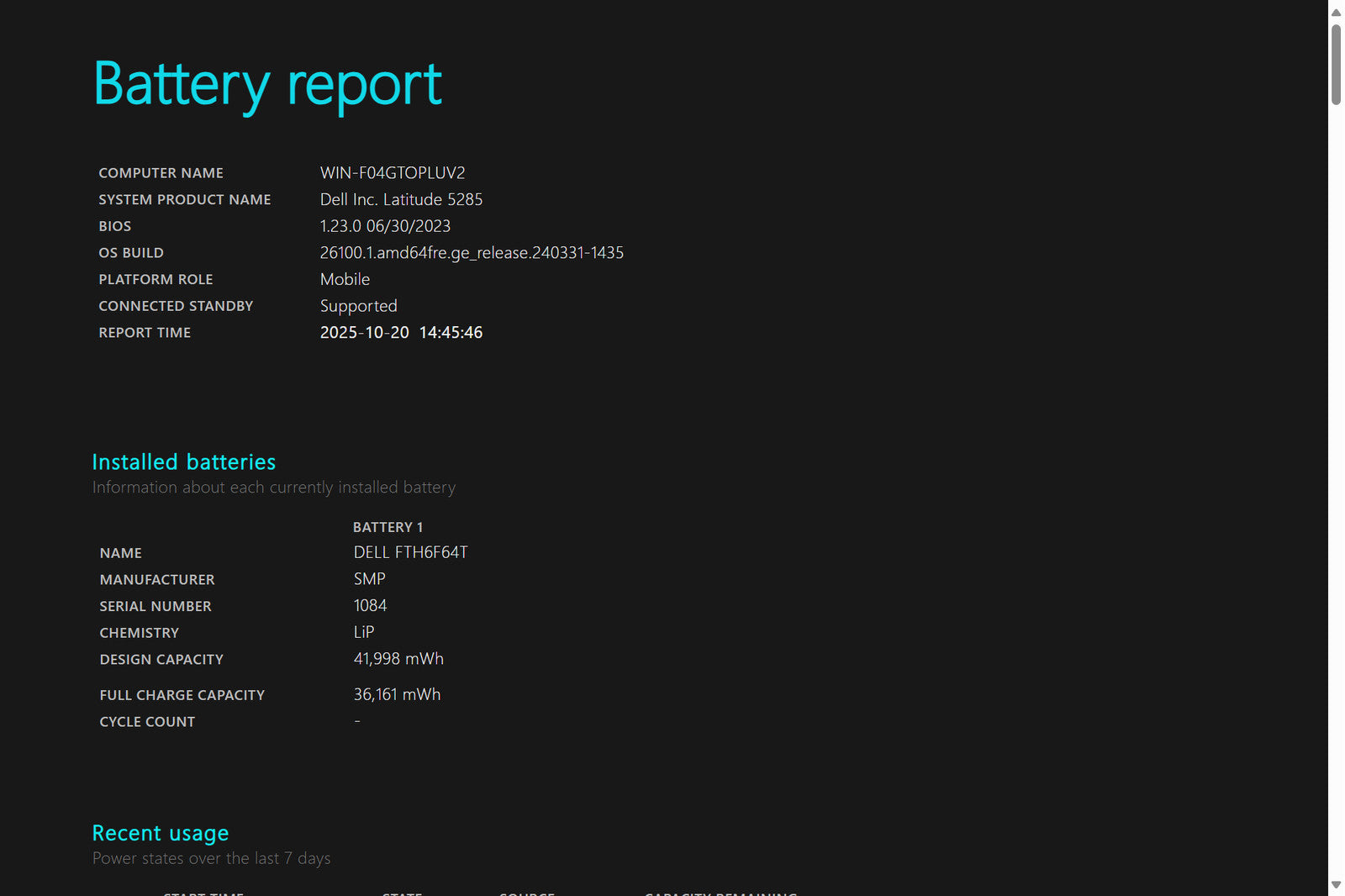 Battery Condition: 36,161/41,998 mWh 86.10%