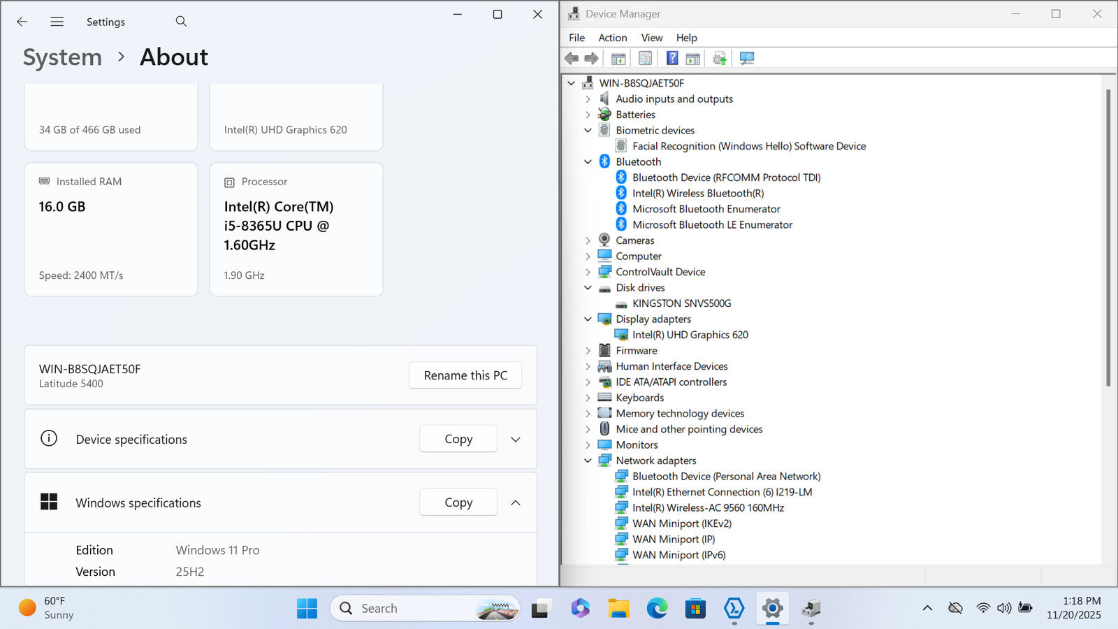 Dell Latitude 5400 14" FHD I5-8365U 512GB SSD 16GB W11P Webcam Backlit IRCam