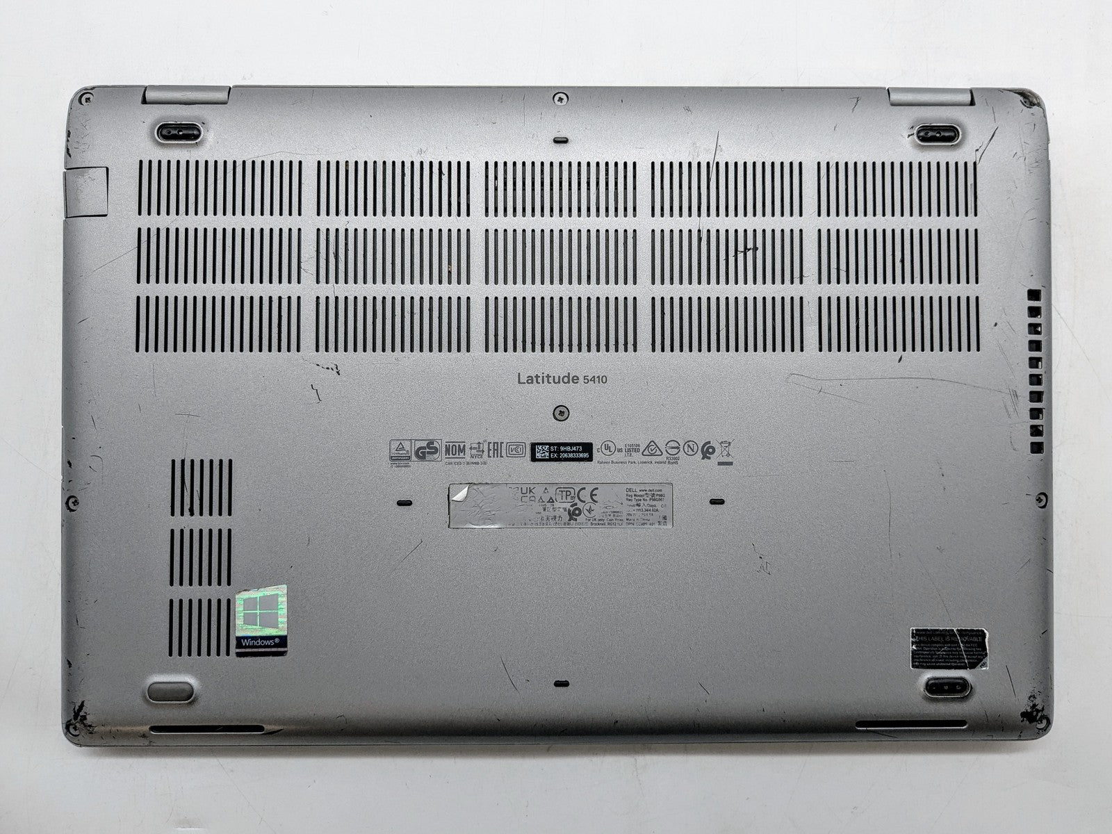 Cosmetic Defects: Interior: Display has visible scratches and keyboard imprinting. Touchpad has glossy wear. Palmrest has visible scratches and dents. Exterior: Both covers have heavy scratches, chipped paint, scuffs, and crackes and missing plastic. 3/4 rubber feet are missing.