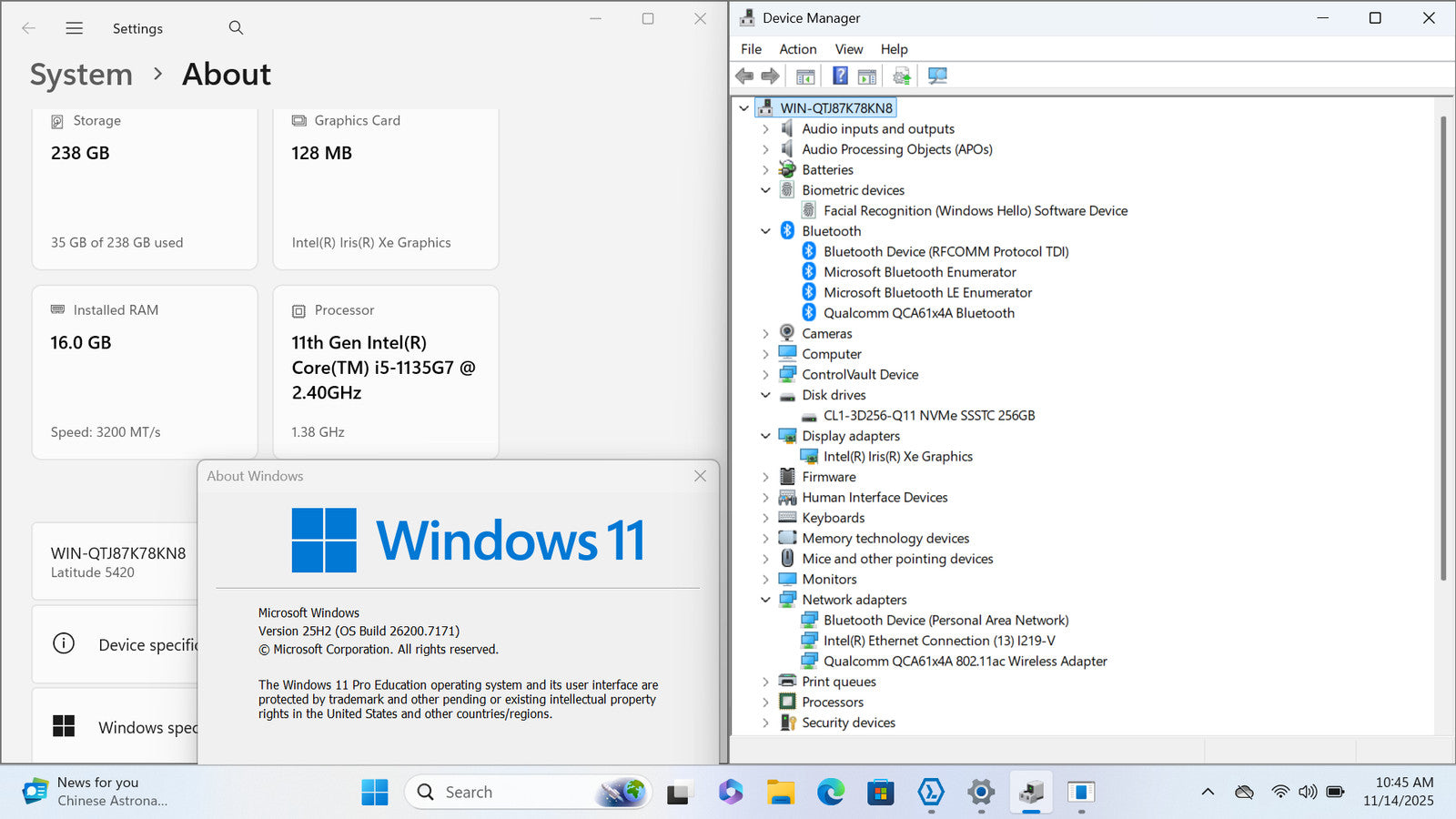 Dell Latitude 5420 14" FHD Touch I5-1135G7 256GB 16GB W11P Webcam Backlit IRCam
