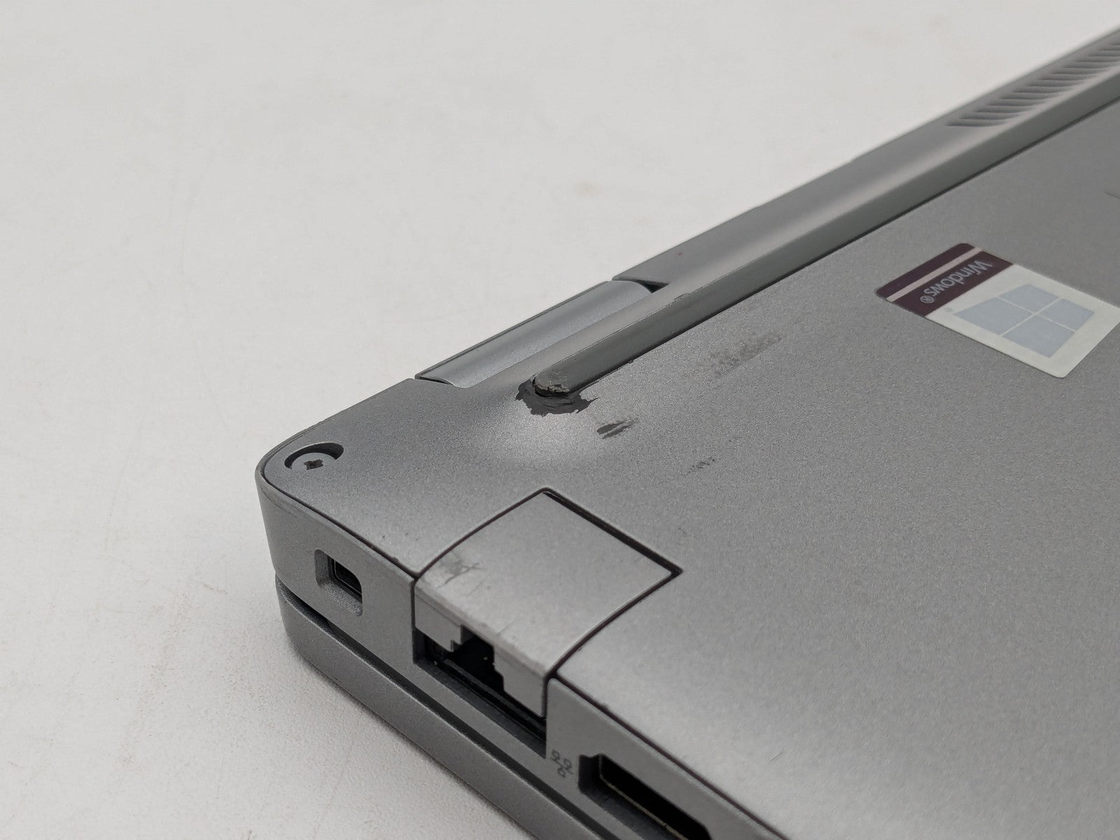 Cosmetic Defects: Interior: Display has visible keyboard imprinting and has bright spots. Palmrest has visible scuffs. Exterior: Both covers have general visible wear, with scratches, scuffs, and chipped paint. Rubber feet have areas of wear.