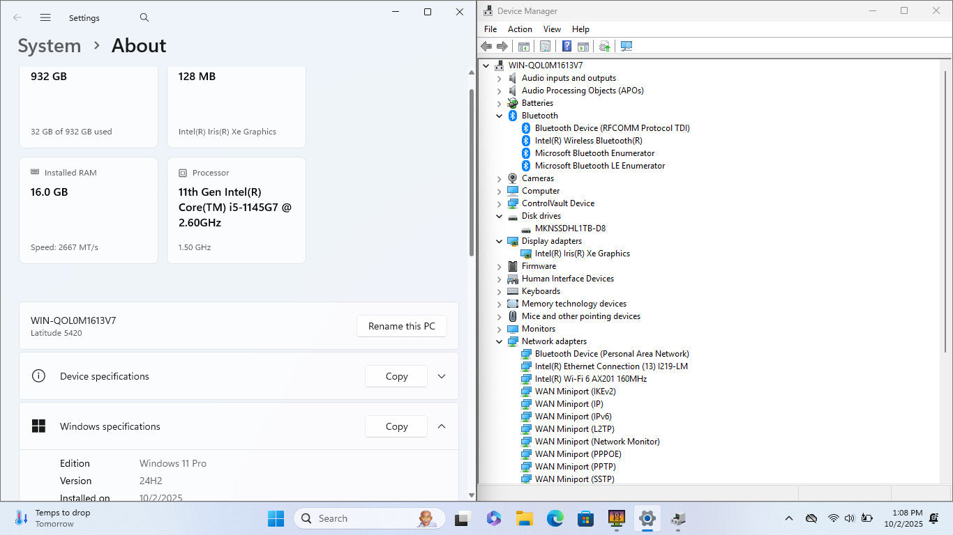Dell Latitude 5420 14" HD I5-1145G7 1TB SSD 16GB W11P Webcam WiFi6 *READ*
