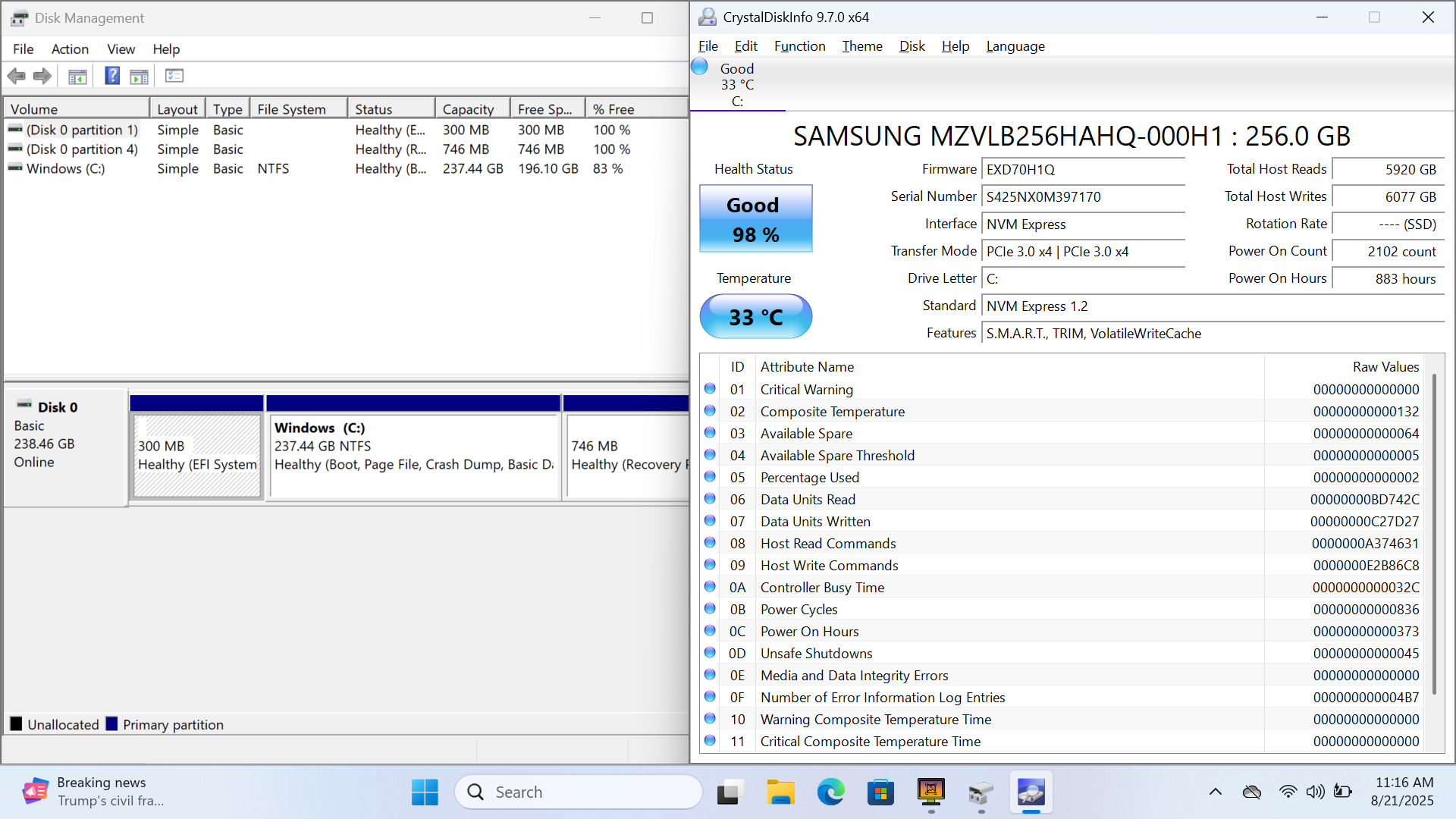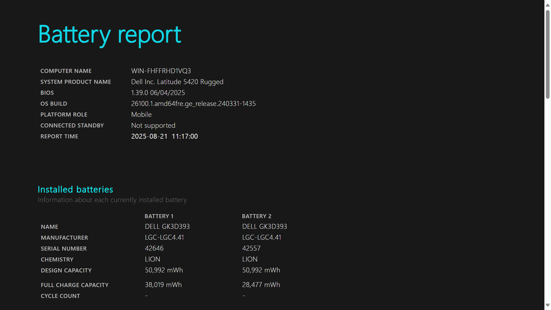 Battery Condition: Battery 1: 38,019/50,992mWh 74.56% | Battery 2: 28,477/50,992mWh 55.85%