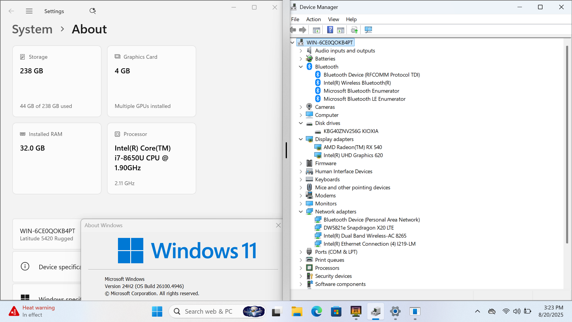 DELL LATITUDE 5420 RUGGED 14" FHD Touch I7-8650U 256GB SSD 32GB W11P RGB Stylus