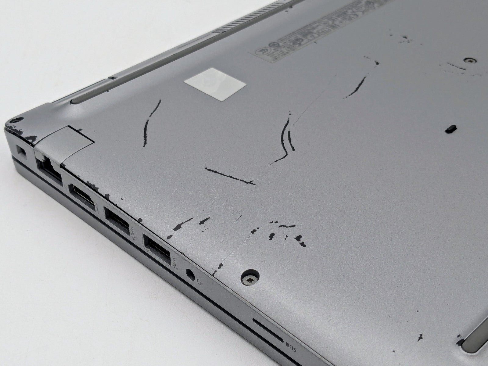 Cosmetic Defects: Interior: Display has visible scratches and keyboard imprinting. Marks on bezel. Exterior: Paint damage on bottom of unit. Scratches and scuffs on top and bottom of unit.