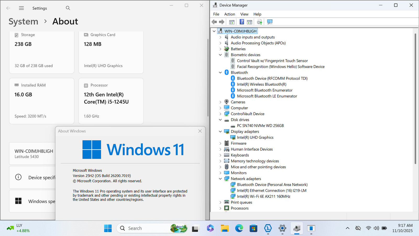 Dell Latitude 5430 14" FHD Touch I5-1245U 256GB SSD 16GB W11P Webcam Backlit