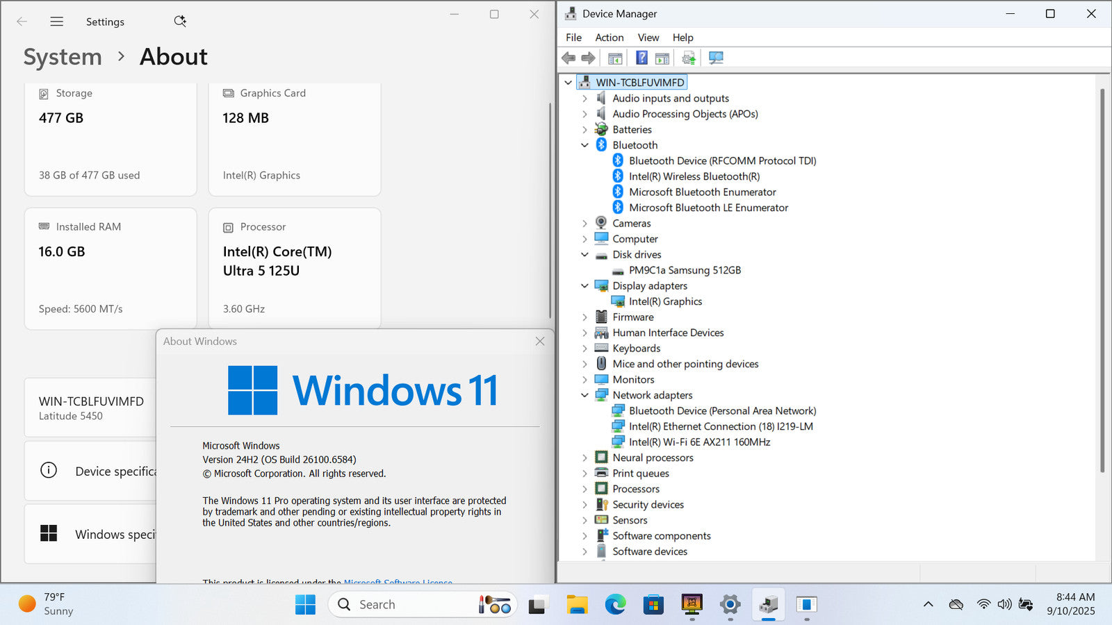 Dell Latitude 5450 14" FHD ULTRA 5 125U 512GB SSD 16GB W11P Webcam Warranty