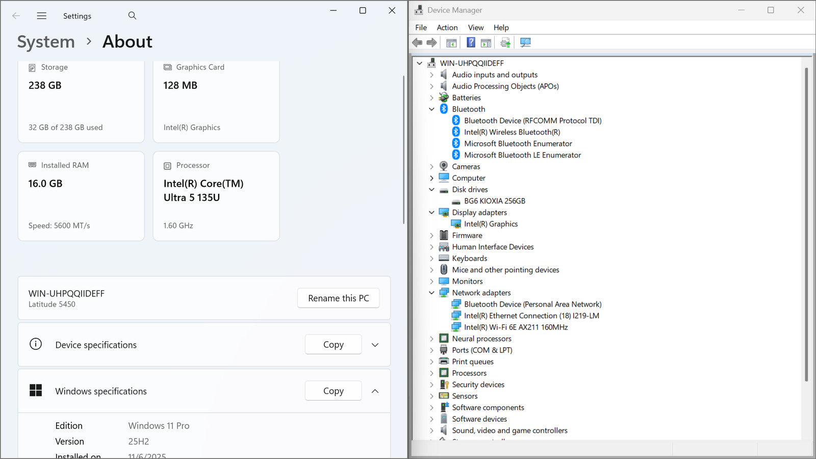 Dell Latitude 5450 14" FHD ULTRA 5 135U 256GB SSD 16GB W11P Webcam Backlit
