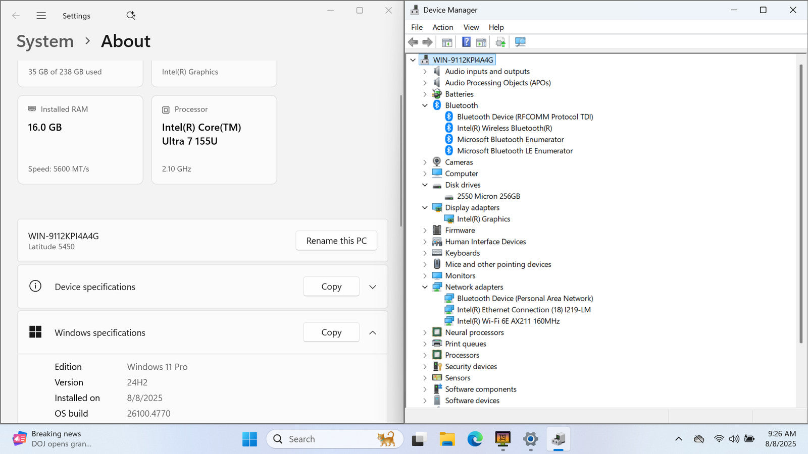 Dell Latitude 5450 14" FHD ULTRA 7 155U 256GB SSD 16GB W11P Warranty *READ*