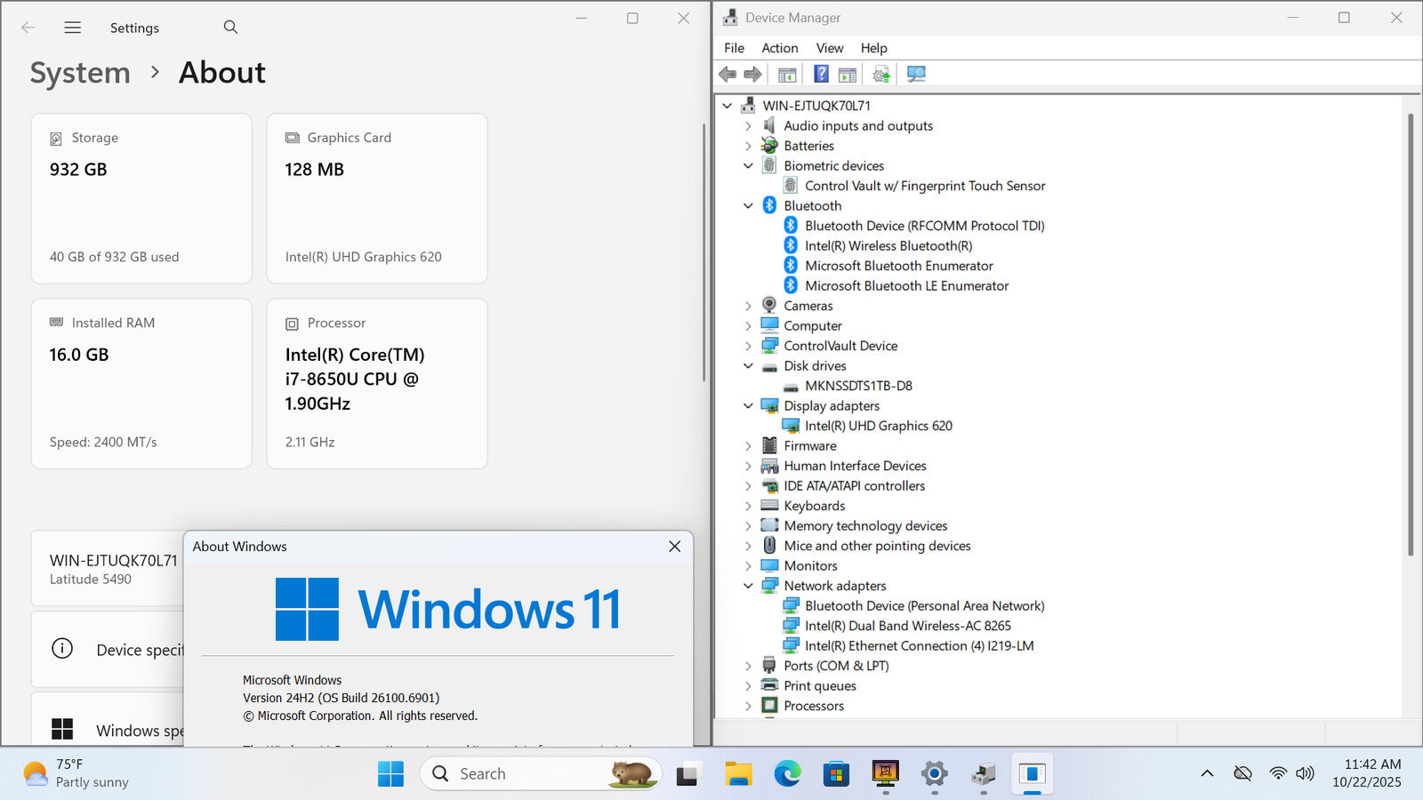 Dell Latitude 5490 14" FHD I7-8650U 1TB 16GB W11P Webcam Backlit FPR *READ*