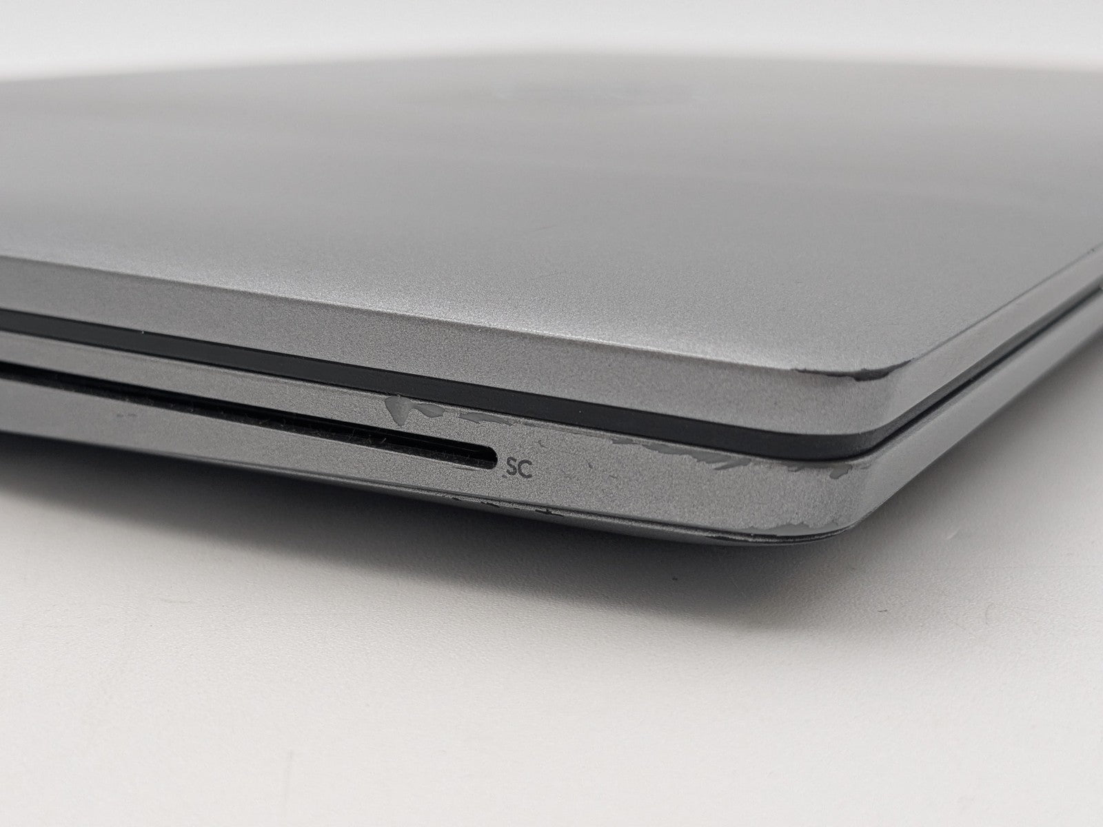 Cosmetic Defects: Interior: Display has visible scuffs. Touchpad has heavy glossy wear. Keycaps have moderate wear. Palmrest has heavy wear and visible dent in front right corner. Exterior: Both covers have moderate surface wear, visible scratches, and chipped paint.