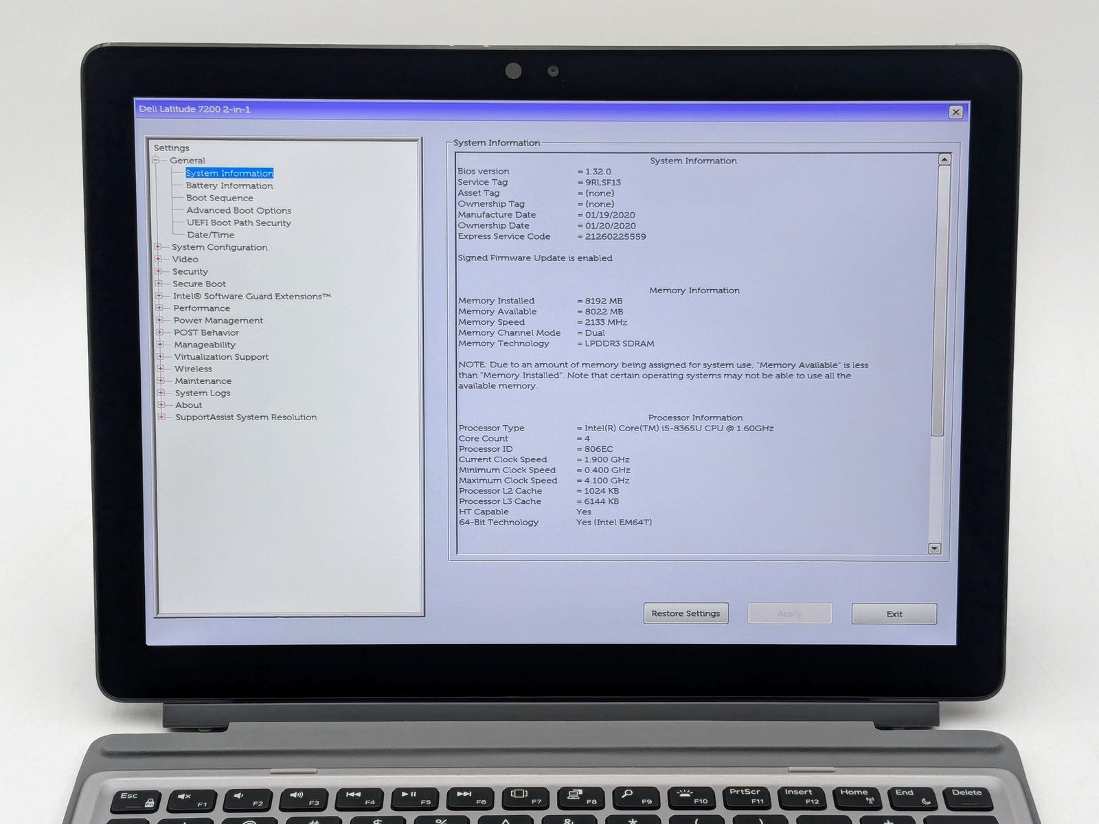 DELL LATITUDE 7200 2-IN-1 12" FHD+ I5-8365U 256GB SSD 8GB W10P Backlit FP Reader