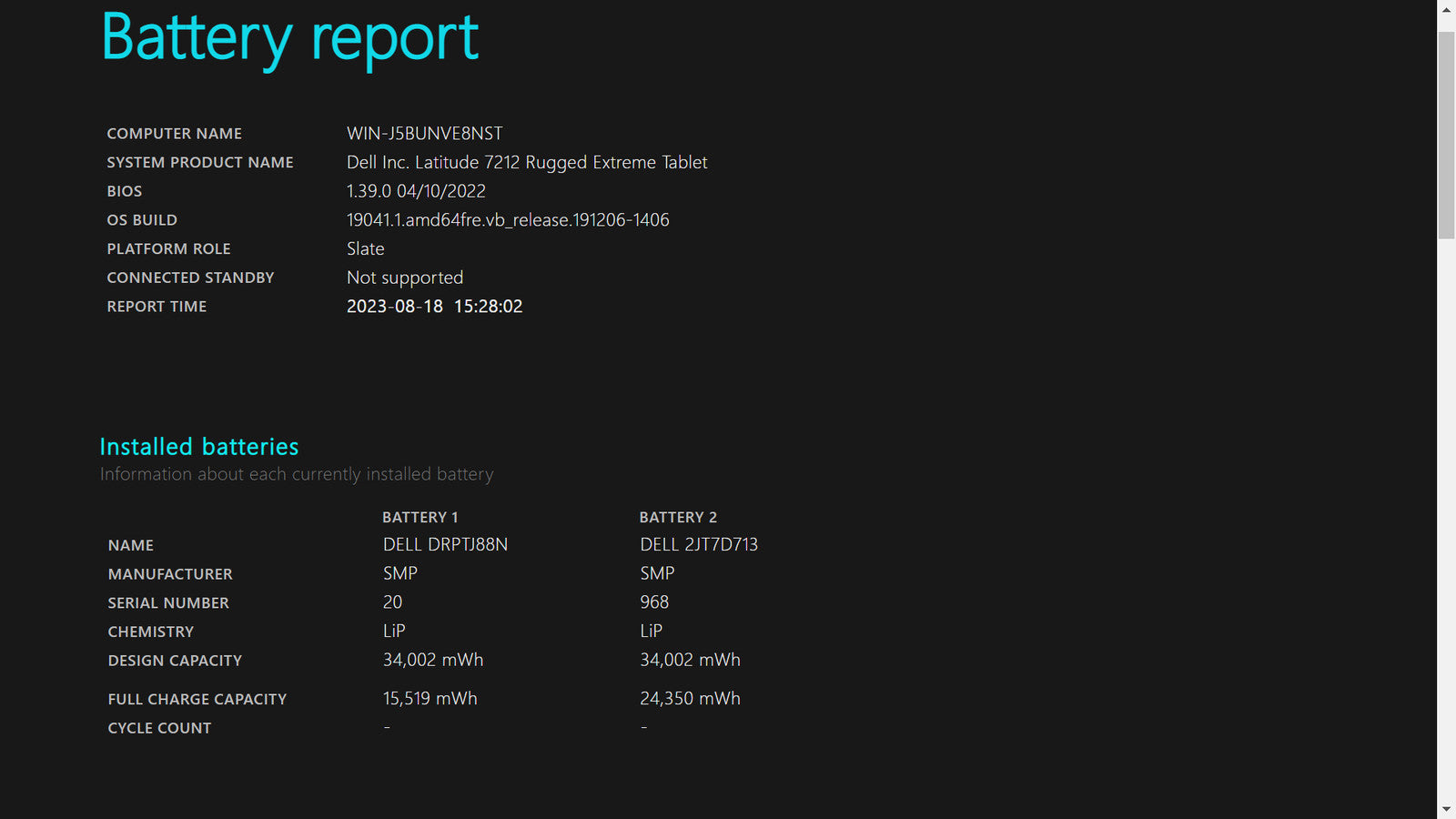 Battery Condition: Battery 1: 24,350/34,002mWh 71.61% | Battery 2: 15,519/34,002mWh 45.64%