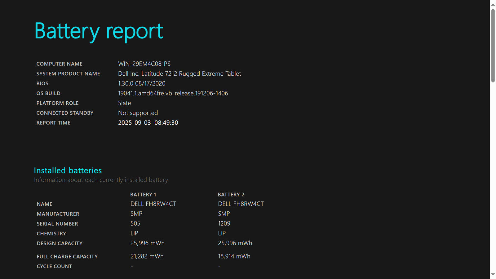 Battery Condition: Battery 1: 21,282/25,996mWh 81.87% | Battery 2: 18,914/25,996mWh 72.76%