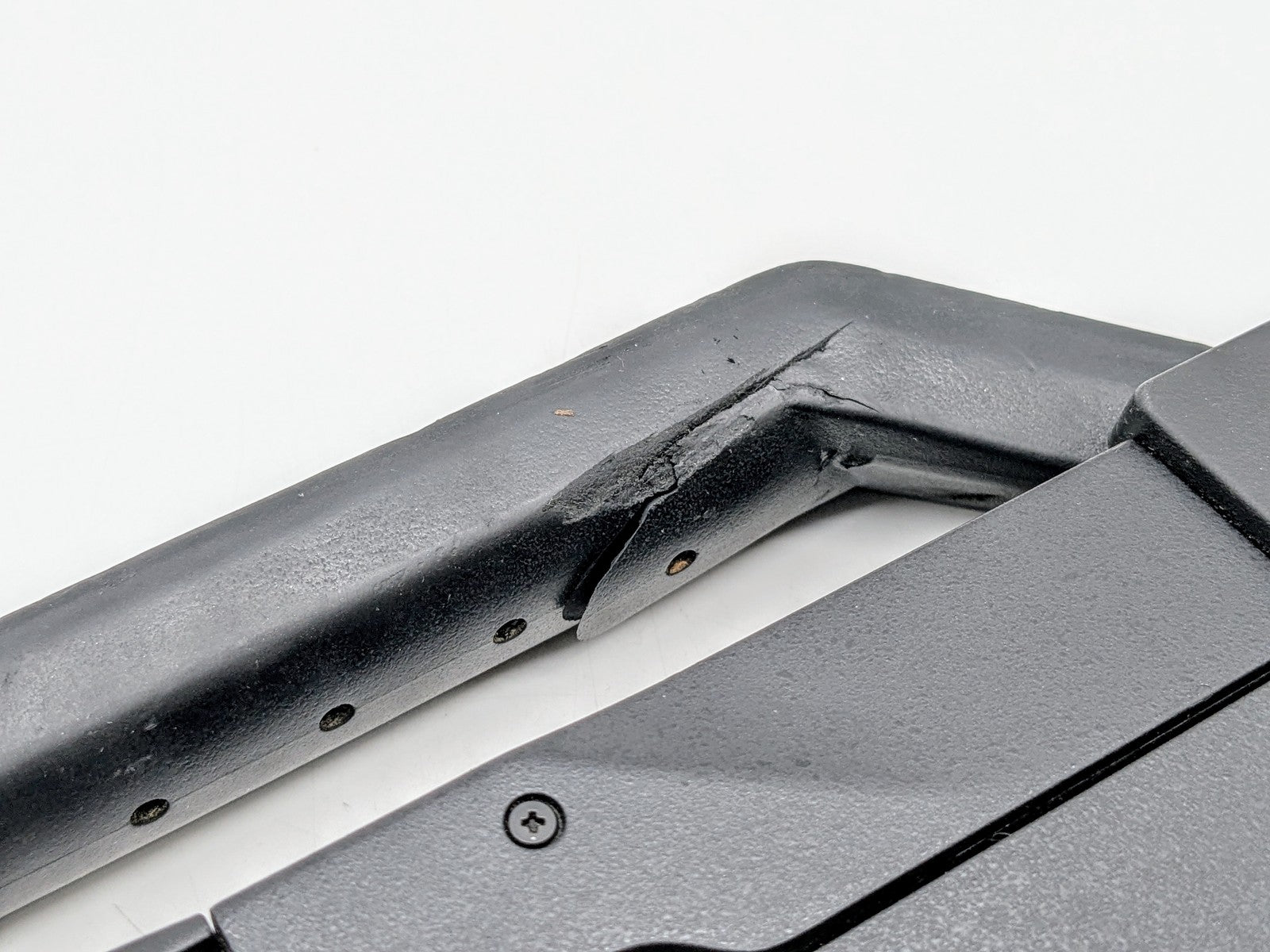 Cosmetic Defects: Interior: Screen has bad sun damage. Display has visible scratches. Exterior: Half of screws on bottom. Handle has wear and tear. Scratches and scuffs on top and bottom.