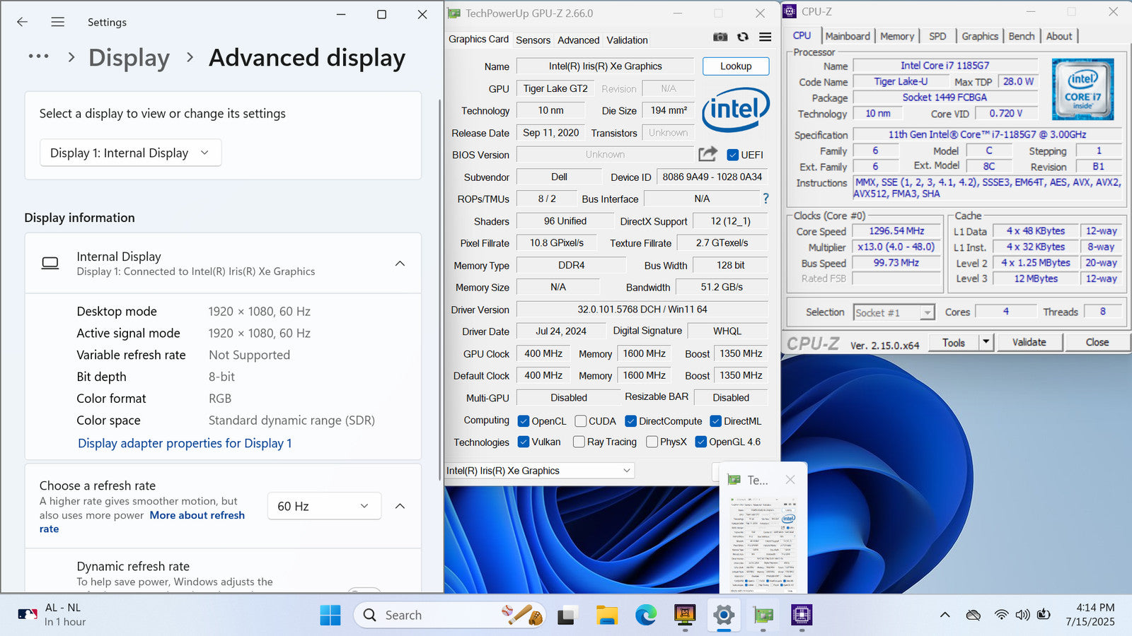 Dell Latitude 7320 13" FHD Touch I7-1185G7 512GB SSD 16GB W11P Webcam IRCam