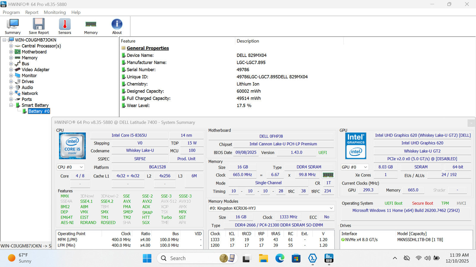 Dell Latitude 7400 14" FHD I5-8365U 1TB SSD 16GB W11 Webcam Backlit IRCam
