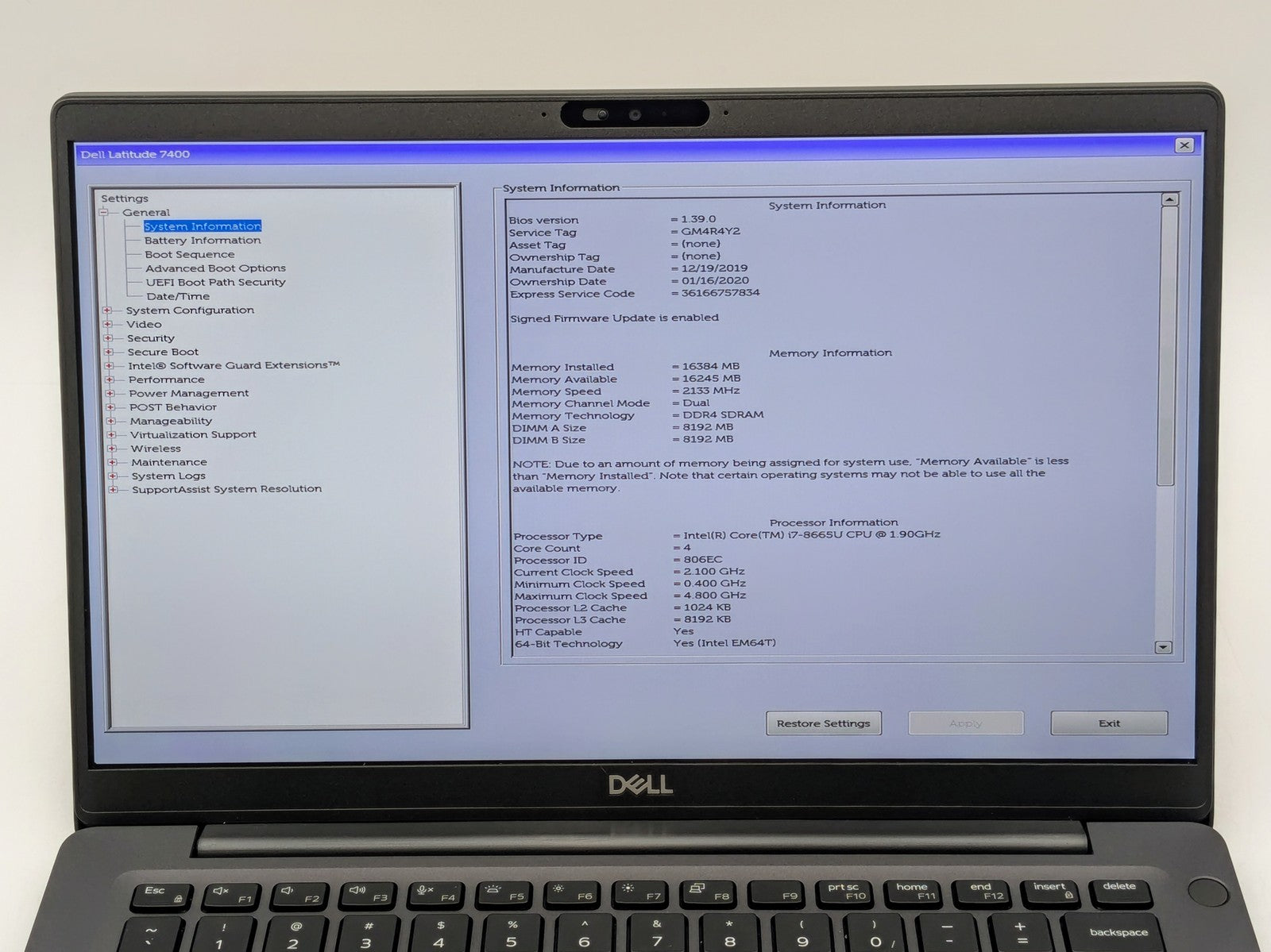 Dell Latitude 7400 14" FHD I7-8665U 256GB SSD 16GB W11P Webcam Backlit *READ*