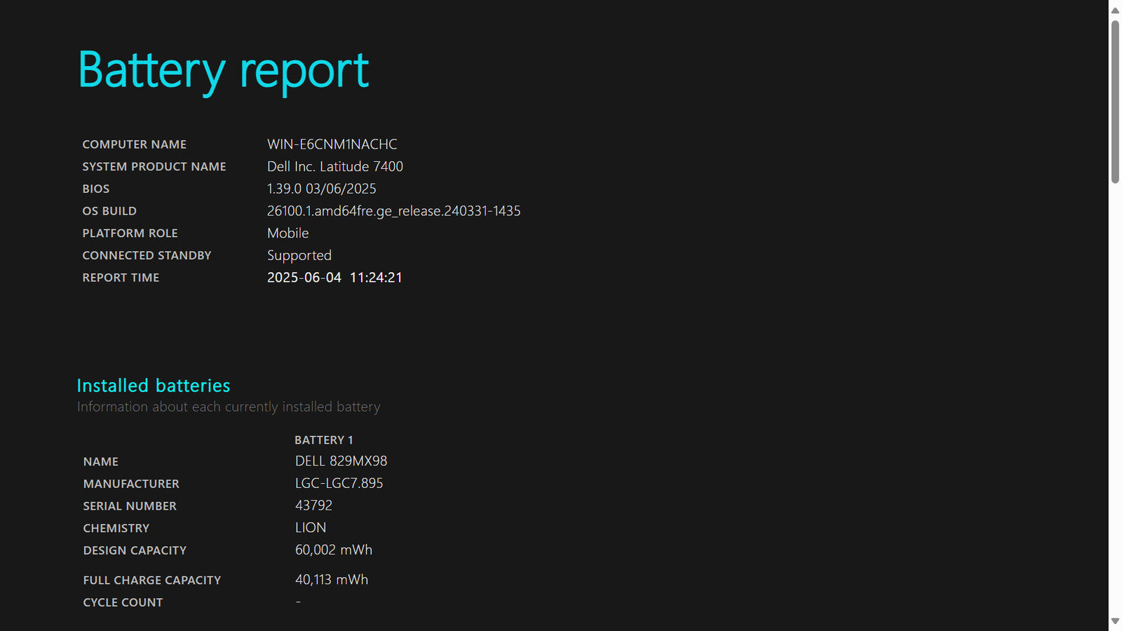 Battery Condition: 40,113/60,002 mWh 66.85%