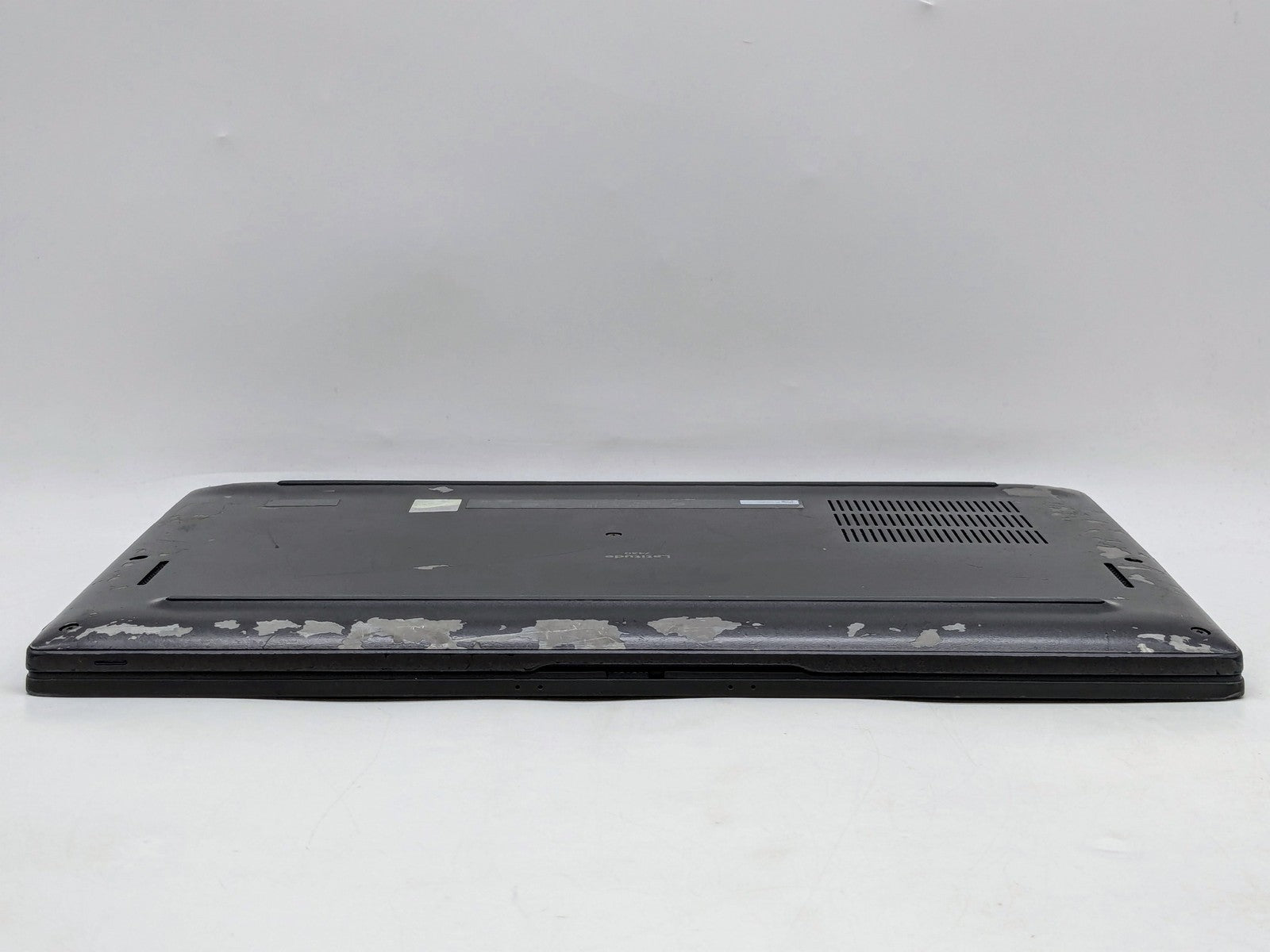 Cosmetic Defects: Interior: Display has visible scratches and keyboard imprinting. Bezle has moderate scuffs. Palmrest has small dent and damaged coating. Touchpad has heavy wear. Exterior: Both covers and edges have visible scratches and worn edge coating. Bottom cover has heavy paint wear and large areas of missing paint.