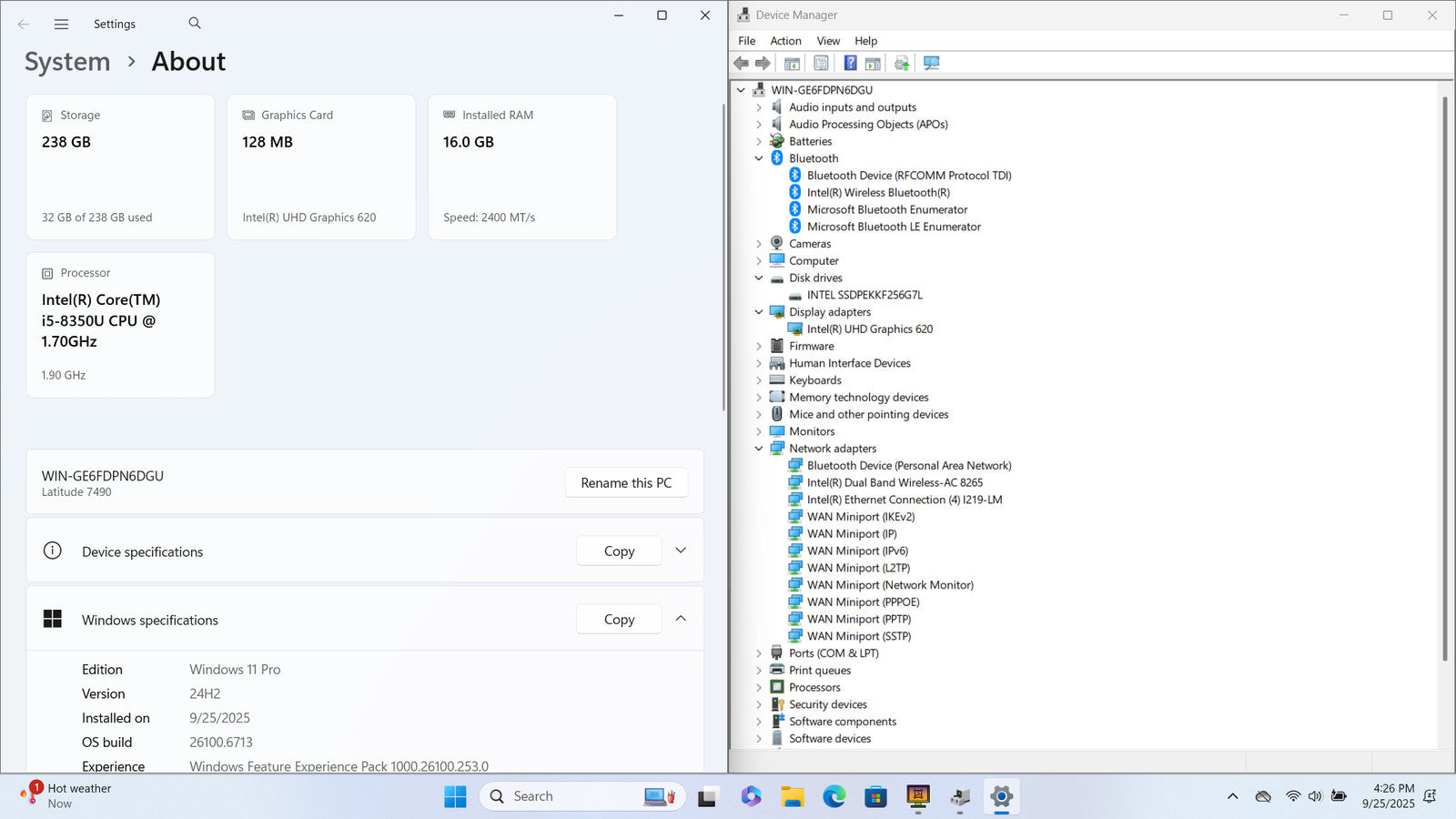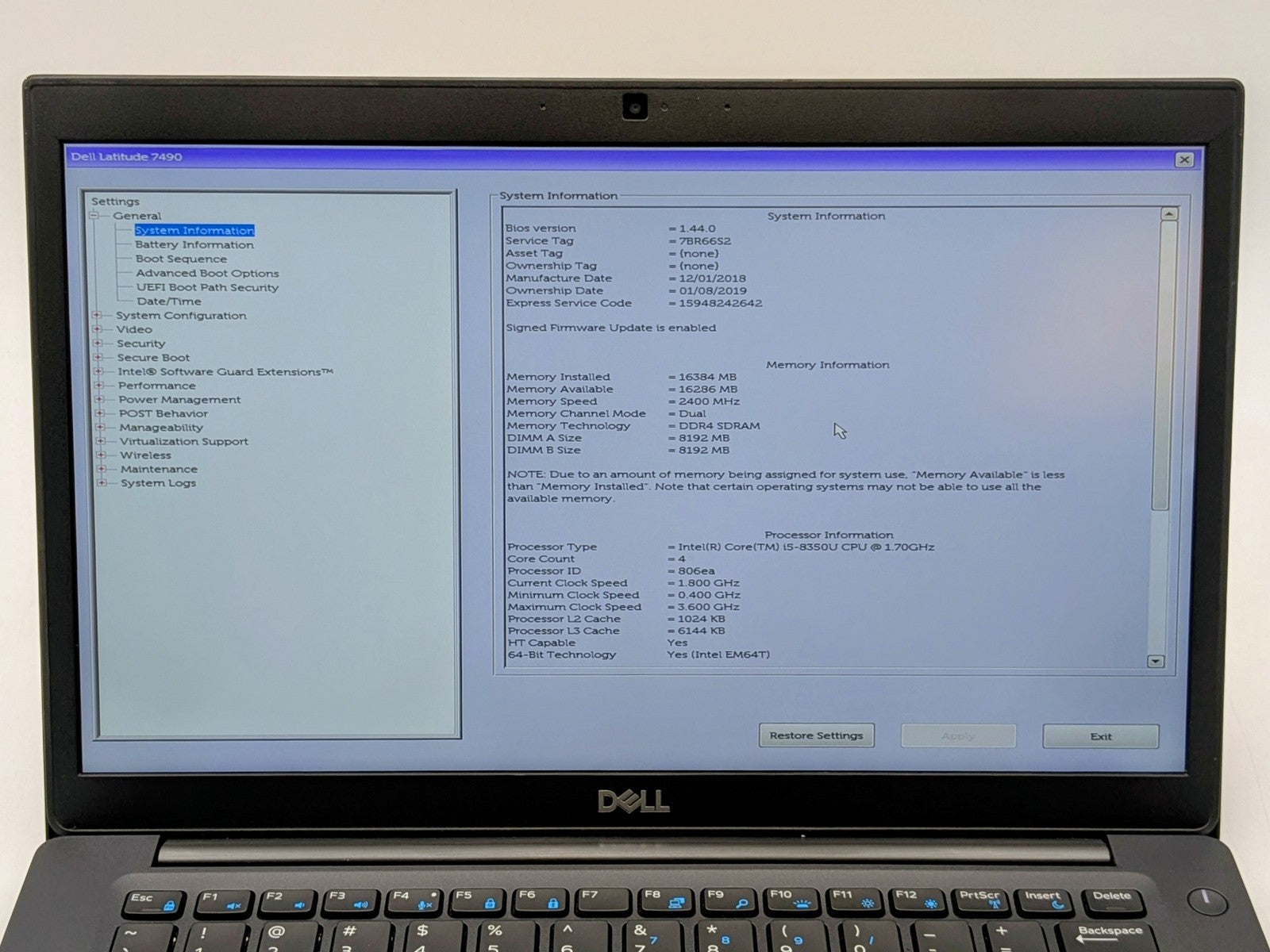 DELL Latitude 7490 14" FHD I5-8350U 256GB SSD 16GB W11P Webcam Backlit *READ*