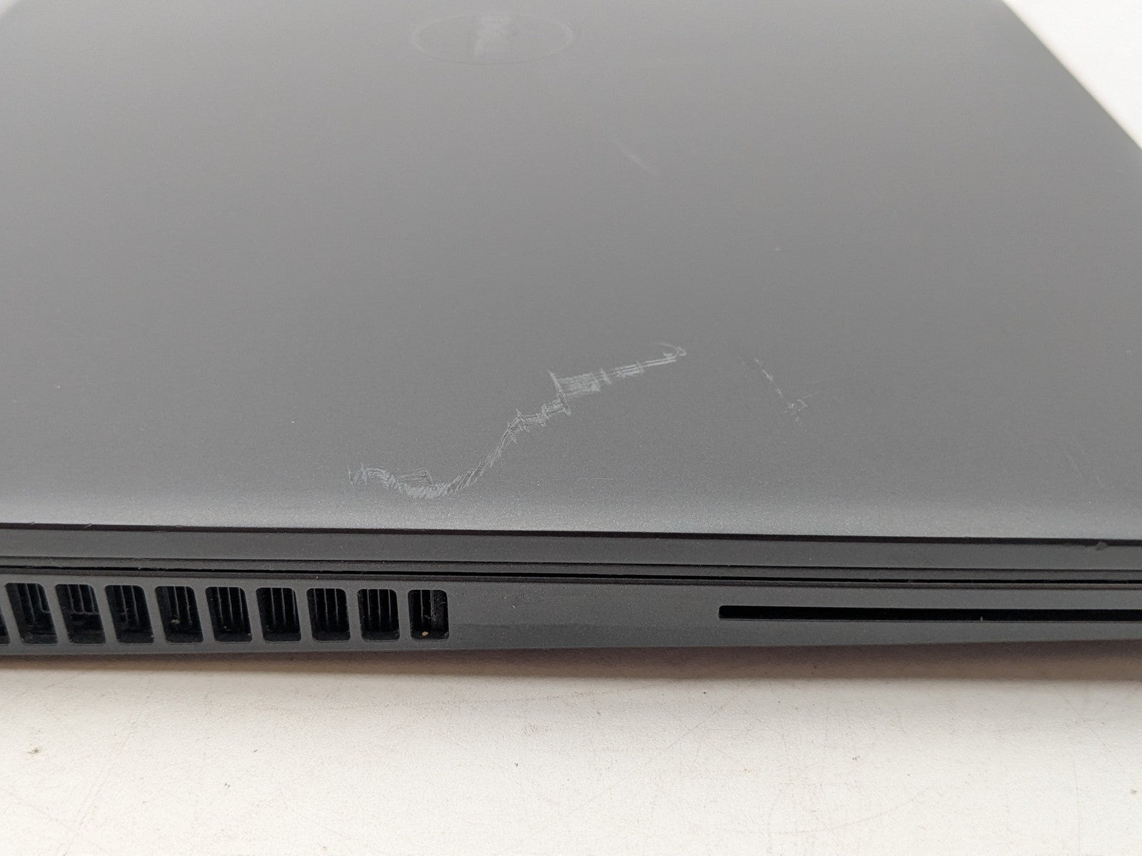 Cosmetic Defects: Interior: Display and bezel have visible scratches and keyboard imprinting. Palmrest has visible scuffs. Touchpad has moderate wear. Exterior: Top cover has deep scrapes and minor scuffs. Bottom cover has moderate scratches, scuffs, and sticker wear. Smart card port has a small crack.