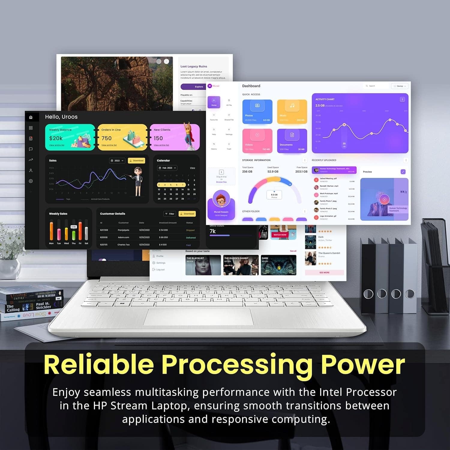 •title: HP - Stream 14" HD Laptop, Intel Celeron N4120, 8GB RAM, 64GB eMMC, Win 11 S,160GB Docking Station - Silver