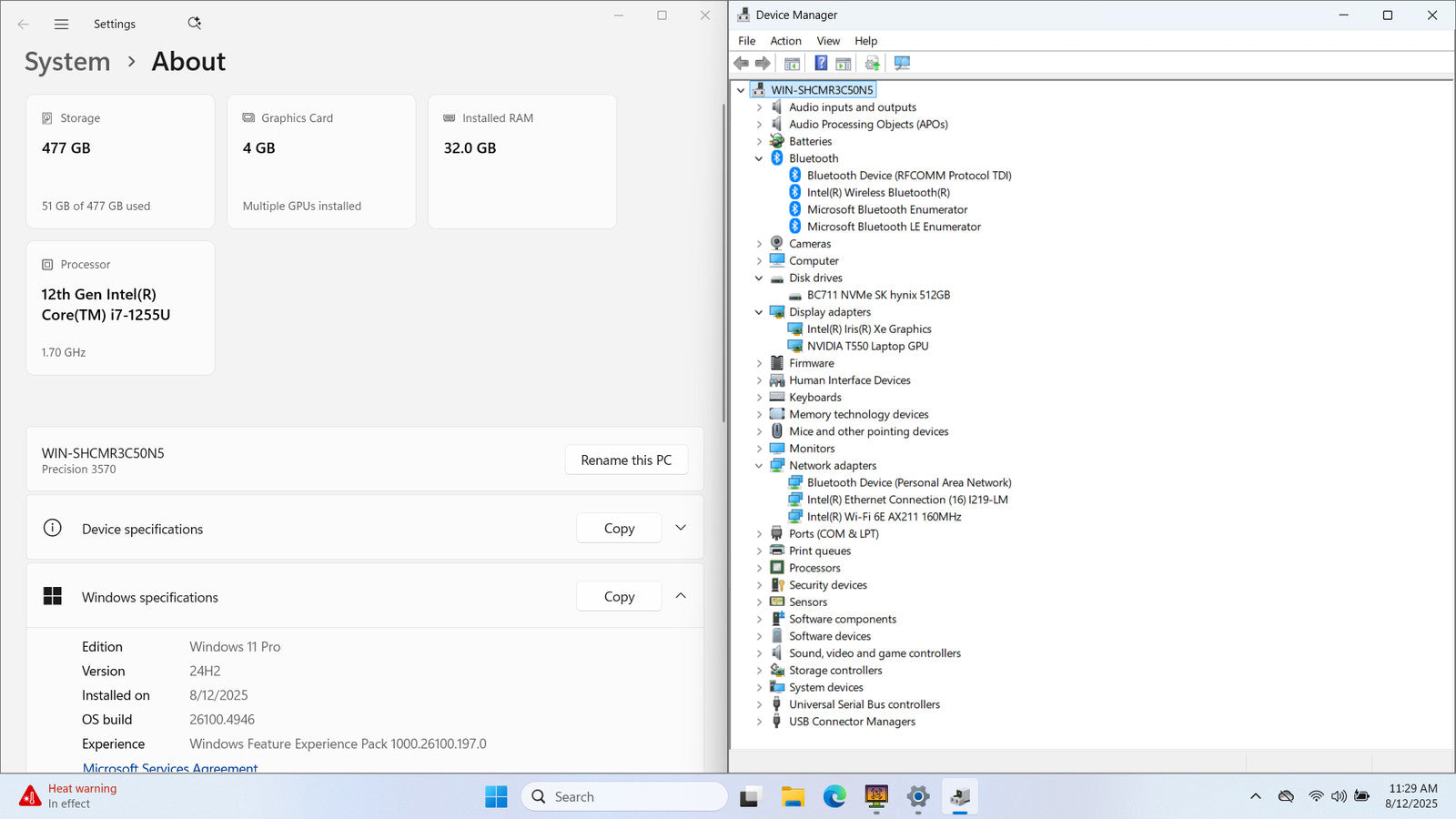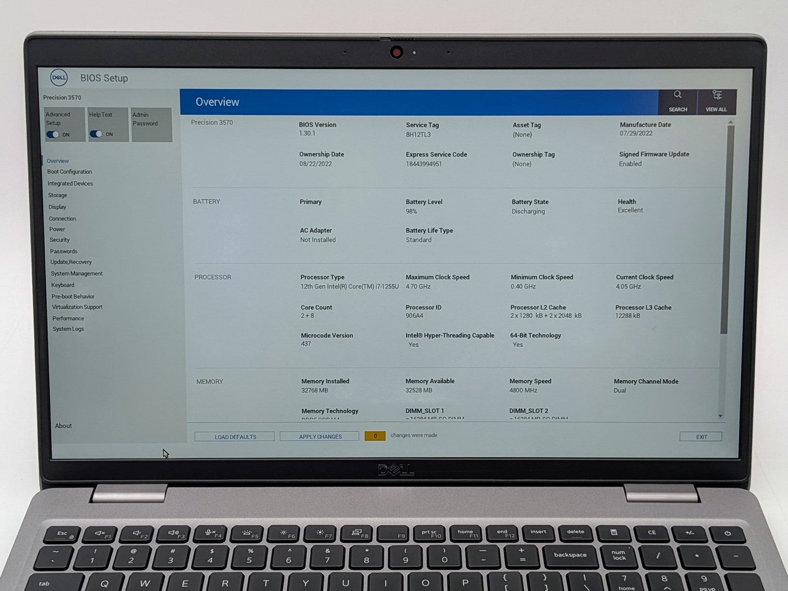 DELL PRECISION 3570 15" FHD I7-1255U 512GB 32GB W11P T550 Laptop GPU Backlit